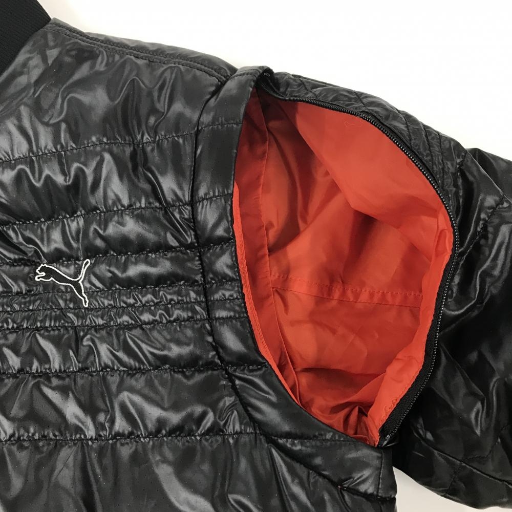 【美品】プーマ 中綿リバーシブルジャケット 黒 裏オレンジ キルティング 4WAY 袖着脱可 メンズ M ゴルフウェア PUMA