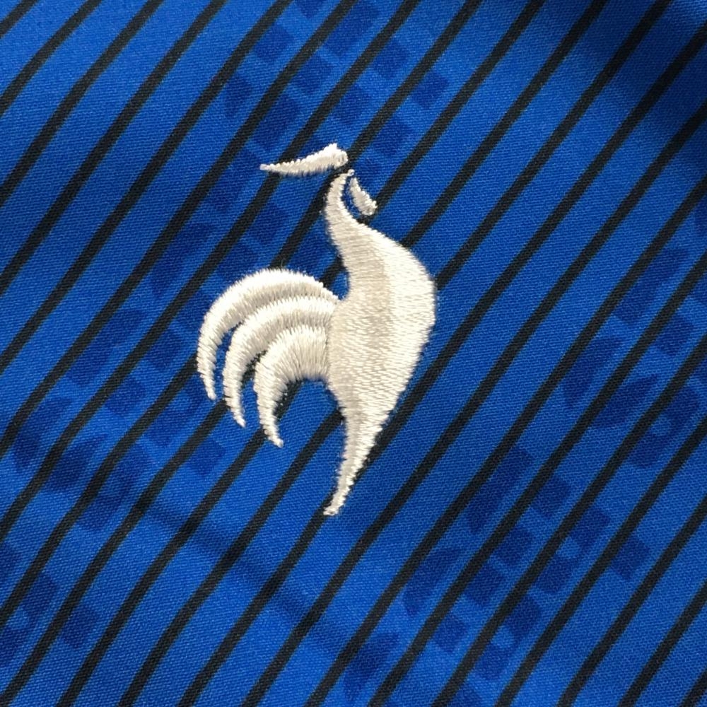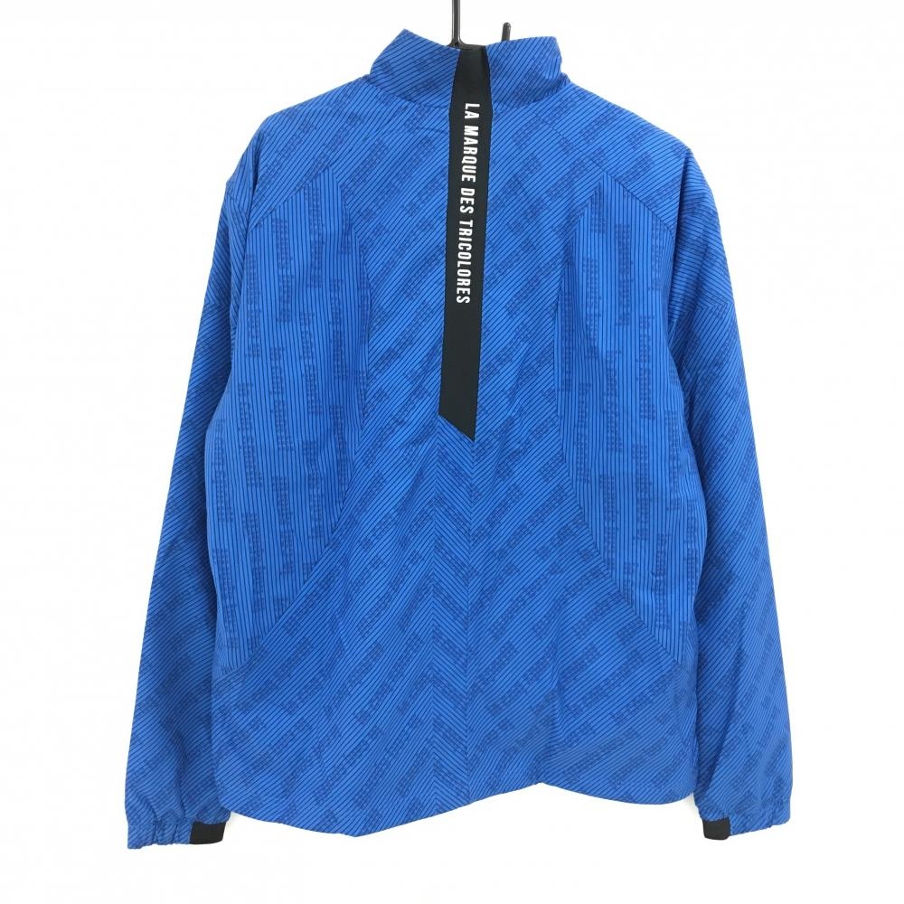 【超美品】ルコックゴルフ 中綿ジャケット ブルー×黒 ストライプ・ロゴ総柄 撥水 メンズ 3L ゴルフウェア 2024年モデル le coq sportif
