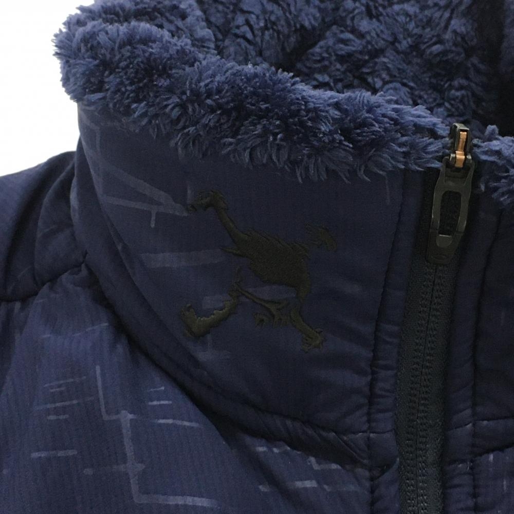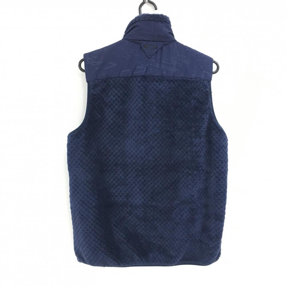 【美品】オークリー 切替ボアベスト ネイビー ネックスカル刺しゅう 胸ポケット メンズ L ゴルフウェア Oakley