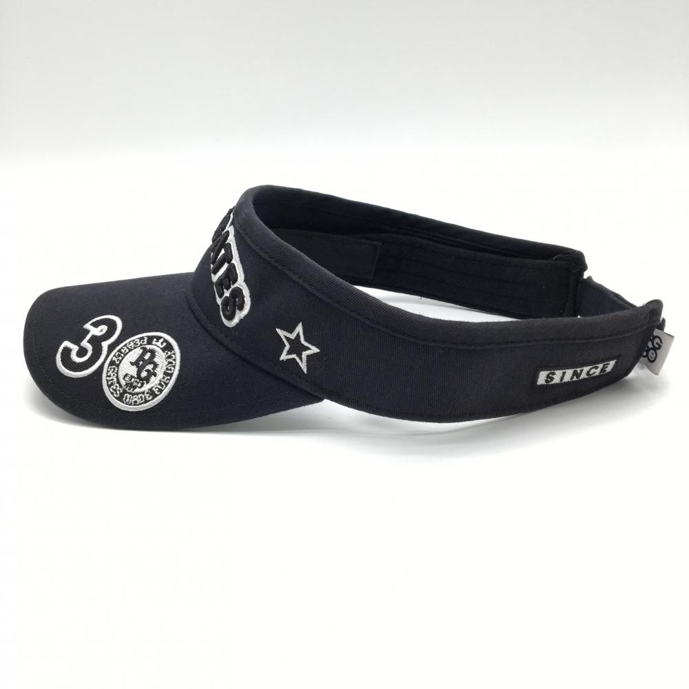パーリーゲイツ サンバイザー ネイビー×白 立体ロゴ刺しゅう 30周年 汗取りパッド付 FR ゴルフウェア PEARLY GATES