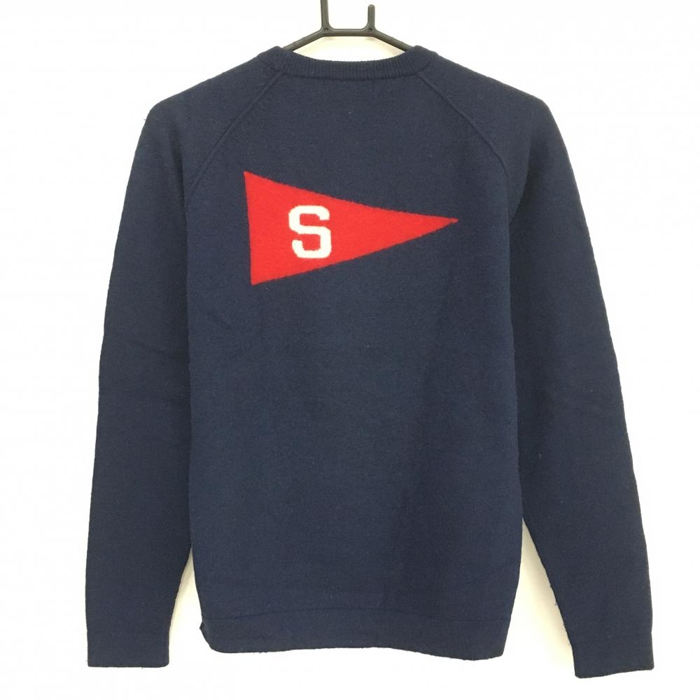 【超美品】ラフアンドスウェル セーター ネイビー×レッド ウール100% ニット メンズ M ゴルフウェア rough&swell
