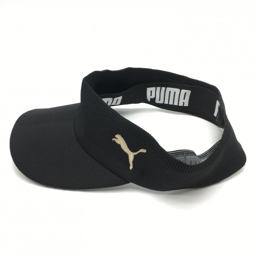 【超美品】プーマ サンバイザー 黒 ロゴゴールド つば縁ロゴ ONE SIZE(54-57cm) ゴルフウェア PUMA