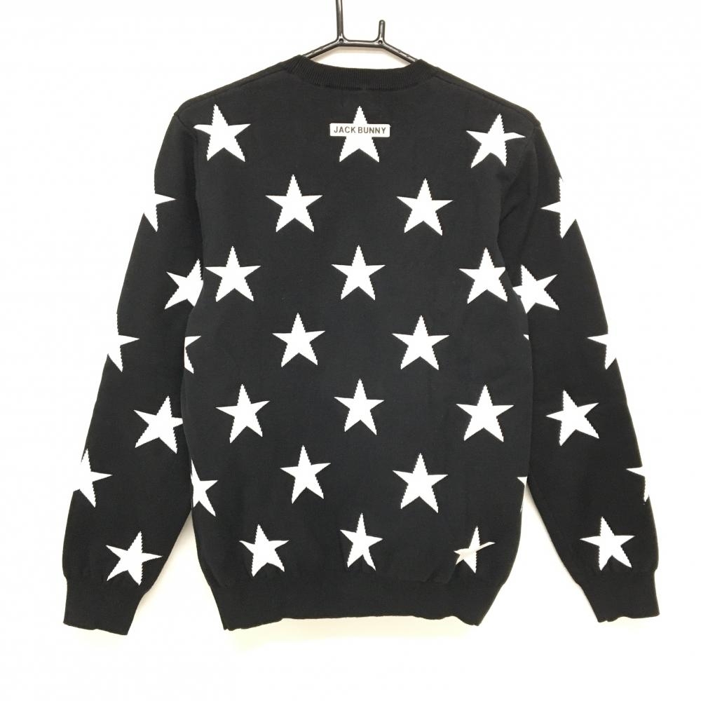 【超美品】ジャックバニー セーター 黒×白 星総柄 ニット メンズ 5(L) ゴルフウェア Jack Bunny