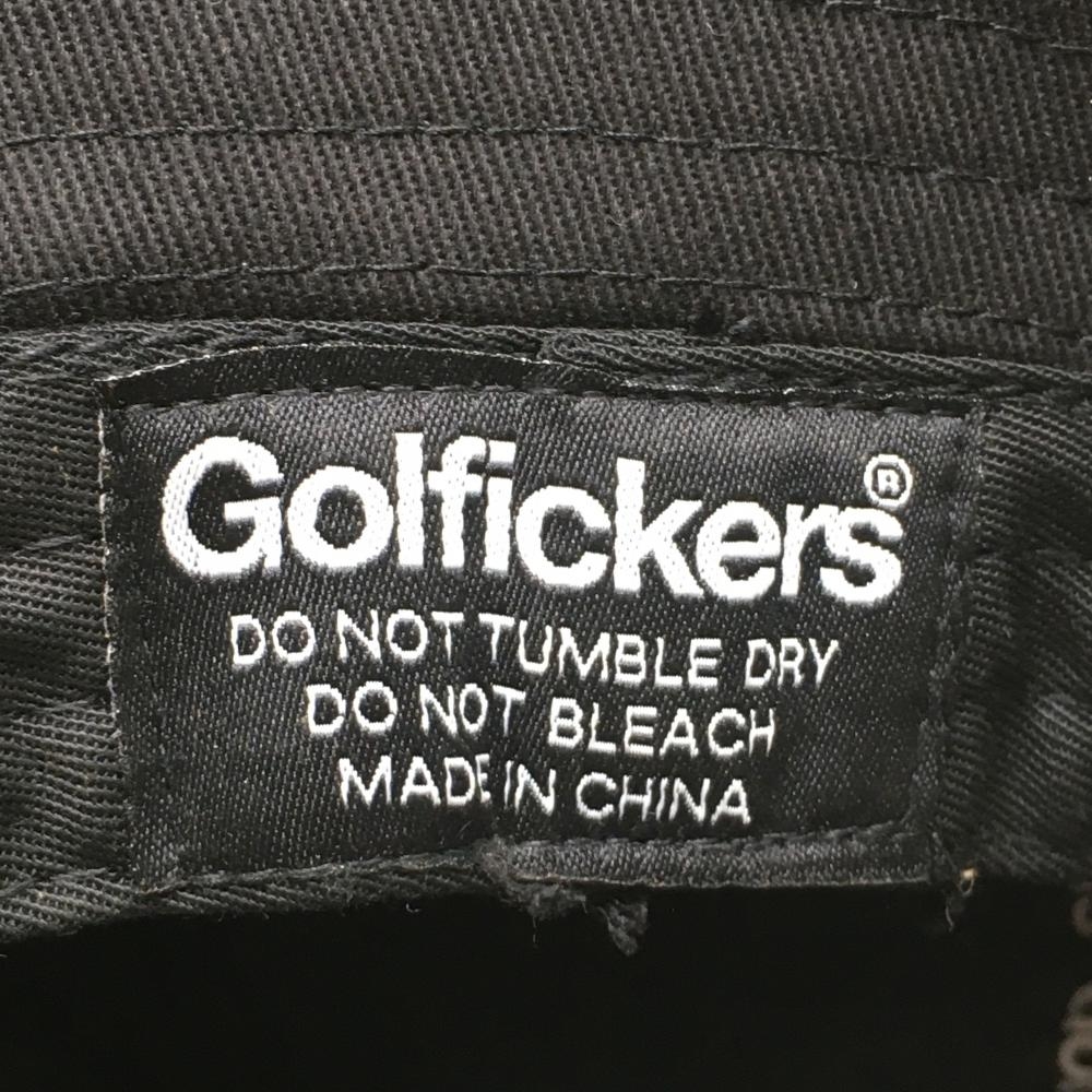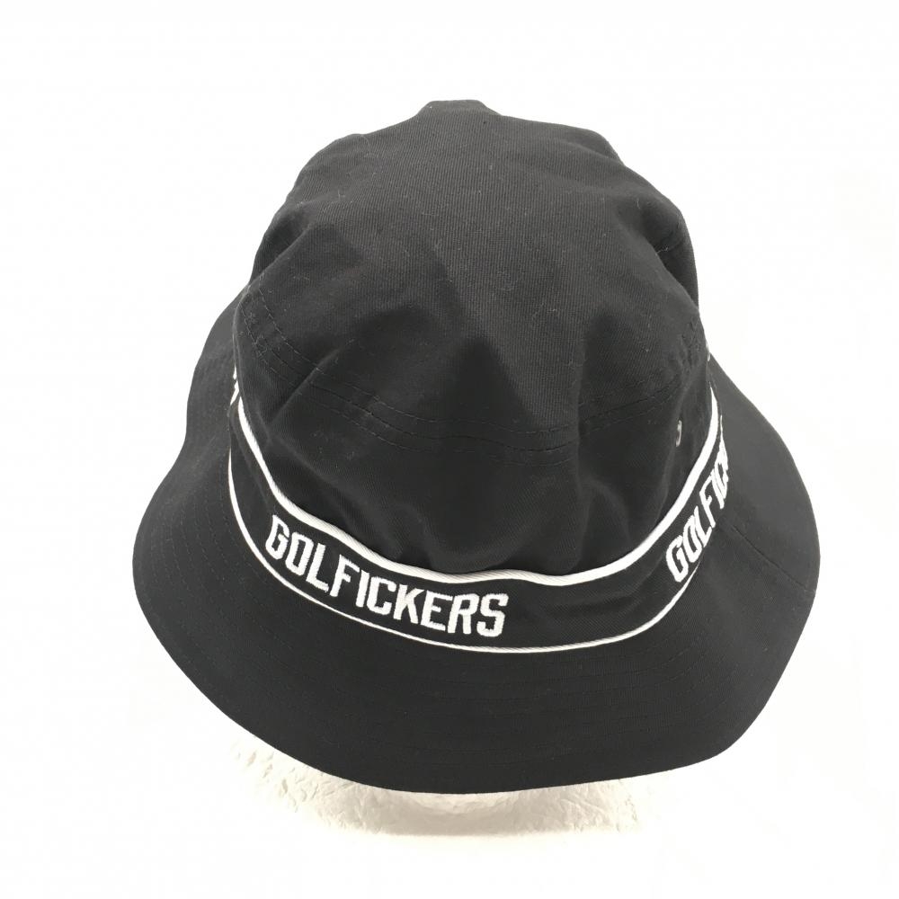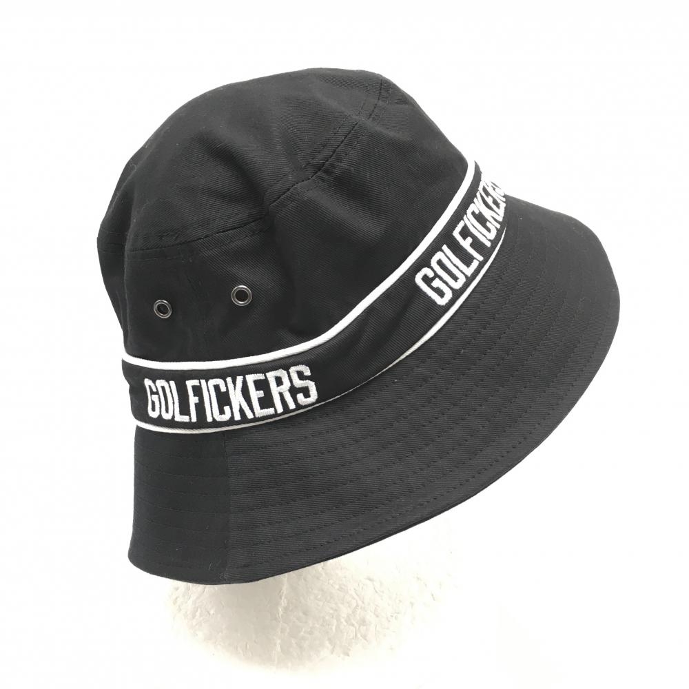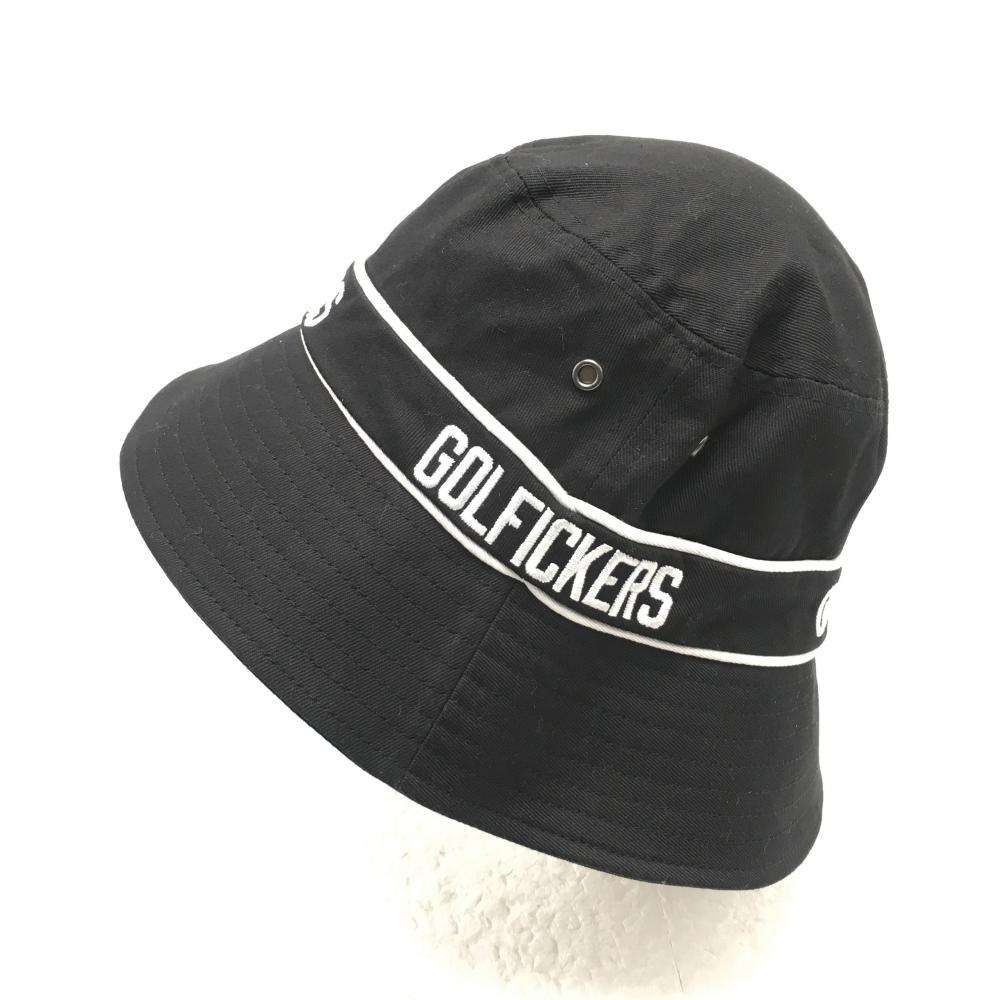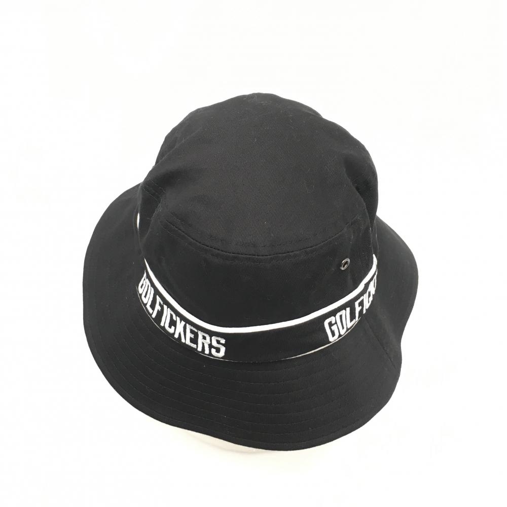 【超美品】ゴルフィッカーズ バケットハット 黒×白 ロゴ刺しゅう ゴルフウェア Golfickers