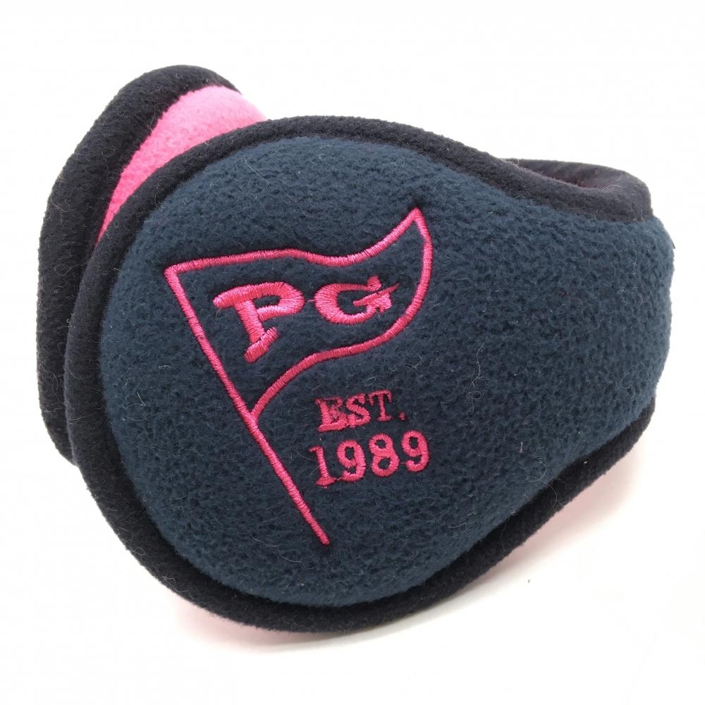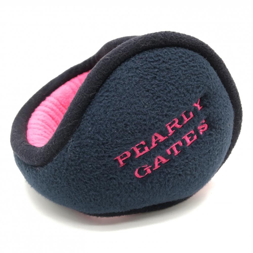 【美品】パーリーゲイツ イヤーマフ ネイビー×ピンク ロゴ刺しゅう ゴルフウェア PEARLY GATES