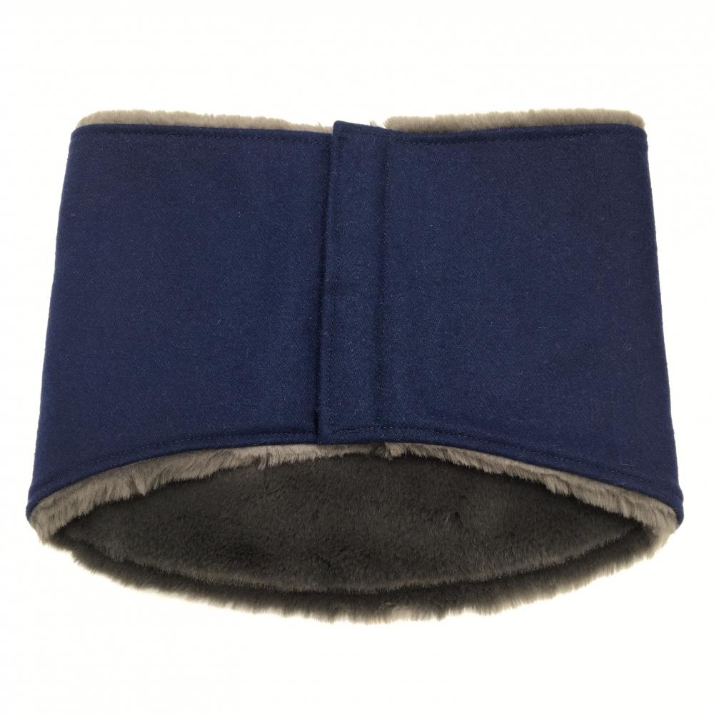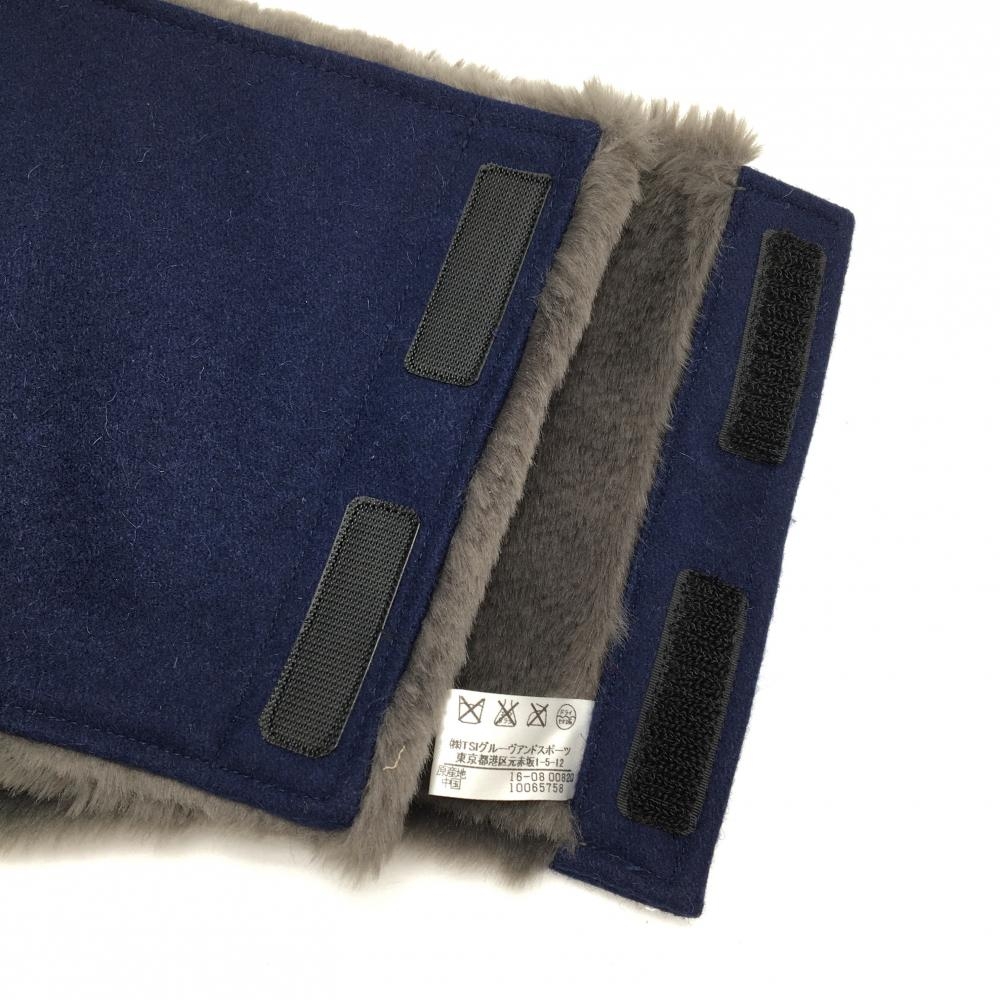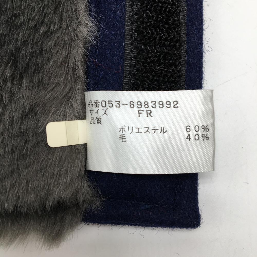 【超美品】パーリーゲイツ ネックウォーマー ネイビー×グレー 裏ファー ウール混 FR ゴルフウェア PEARLY GATES