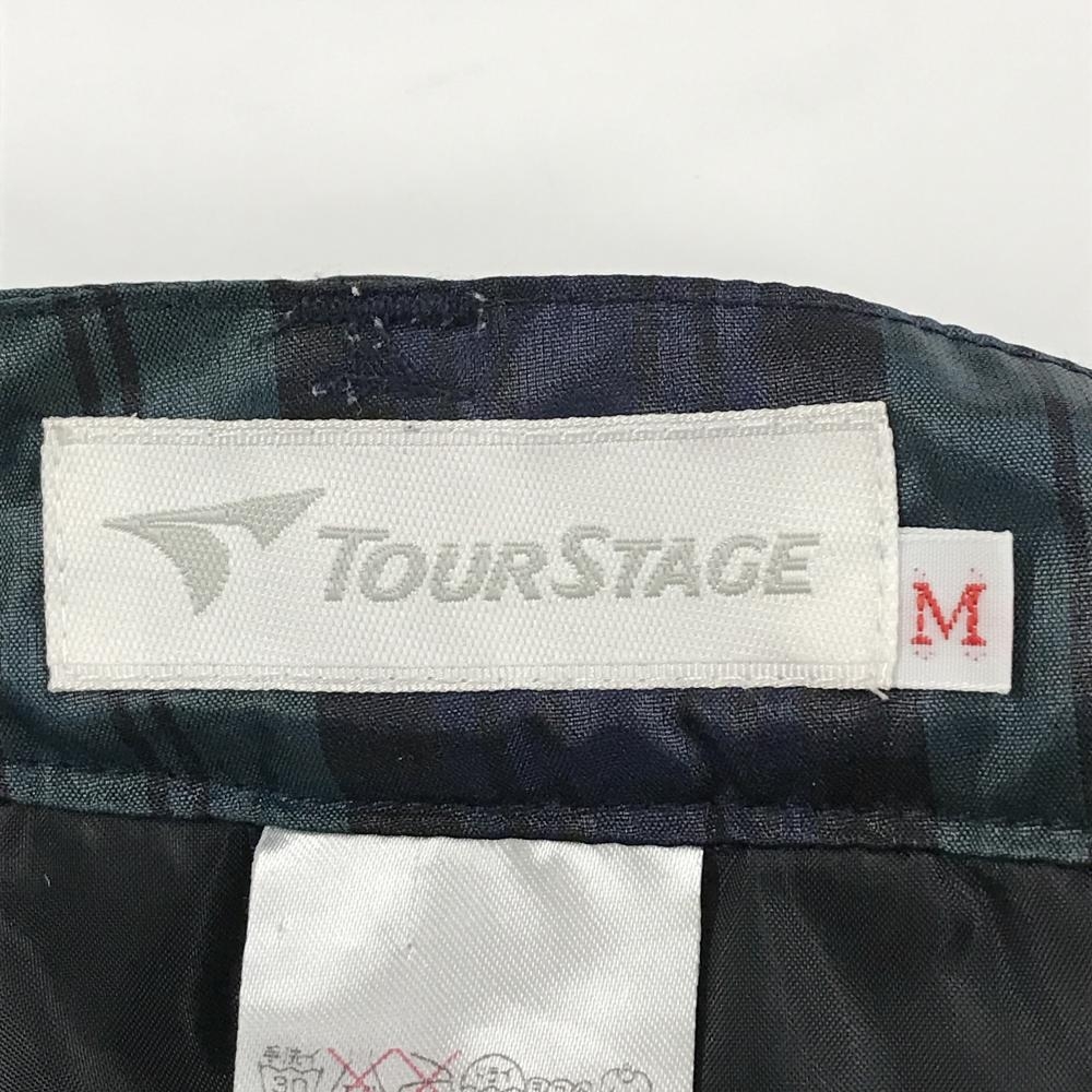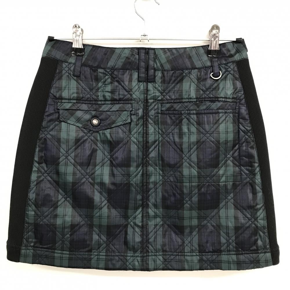 【超美品】ツアーステージ 中綿スカート グリーン×ネイビー チェック キルティング サイドリブ レディース M ゴルフウェア TOURSTAGE