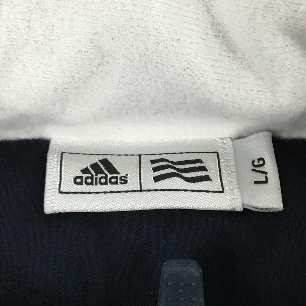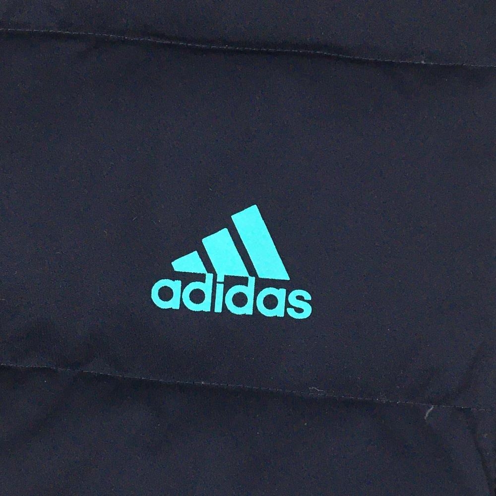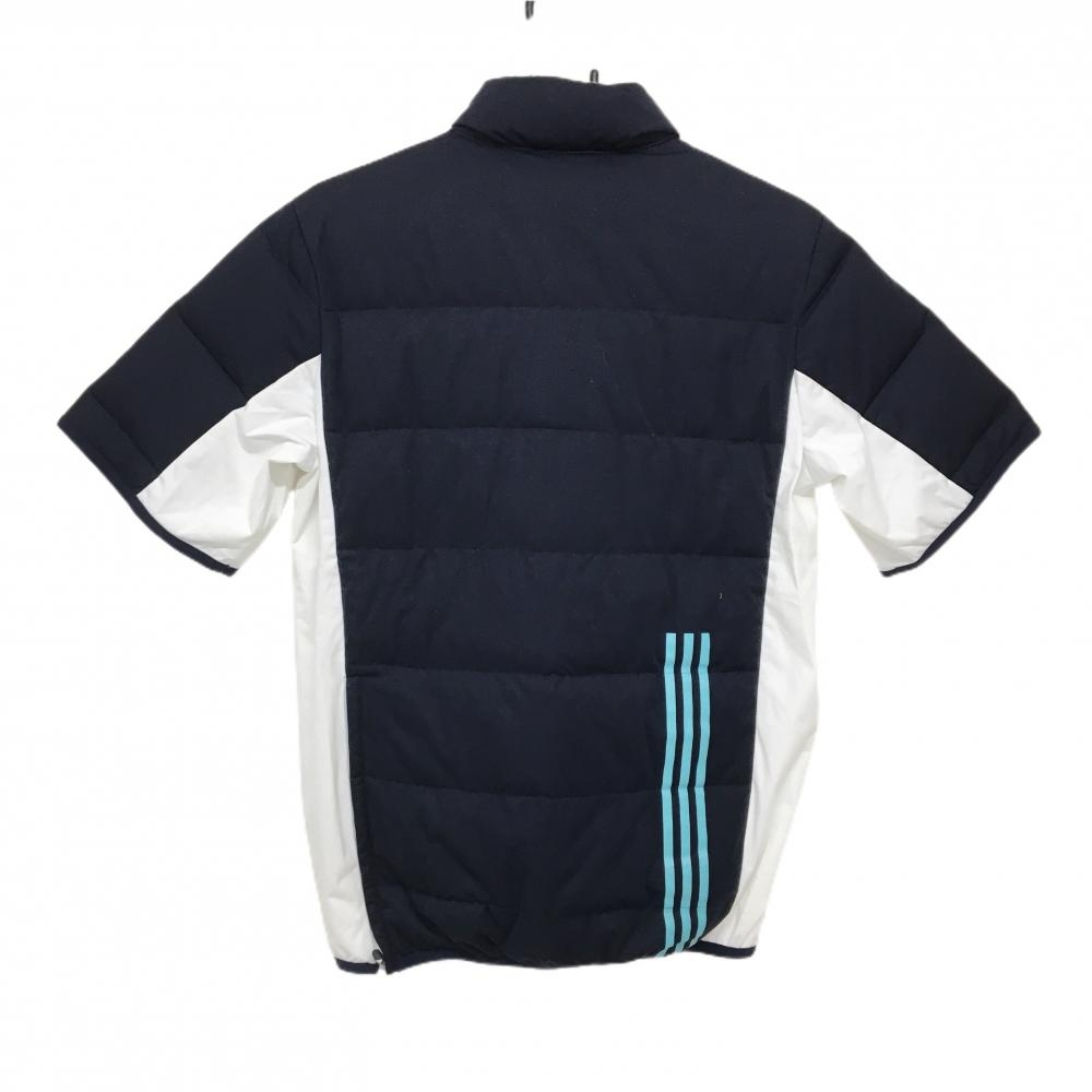 【美品】アディダス ダウン半袖ブルゾン ネイビー×白 袖下・サイド切替 レディース L/G ゴルフウェア adidas