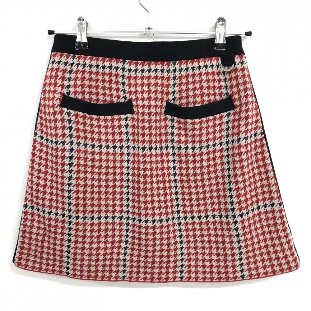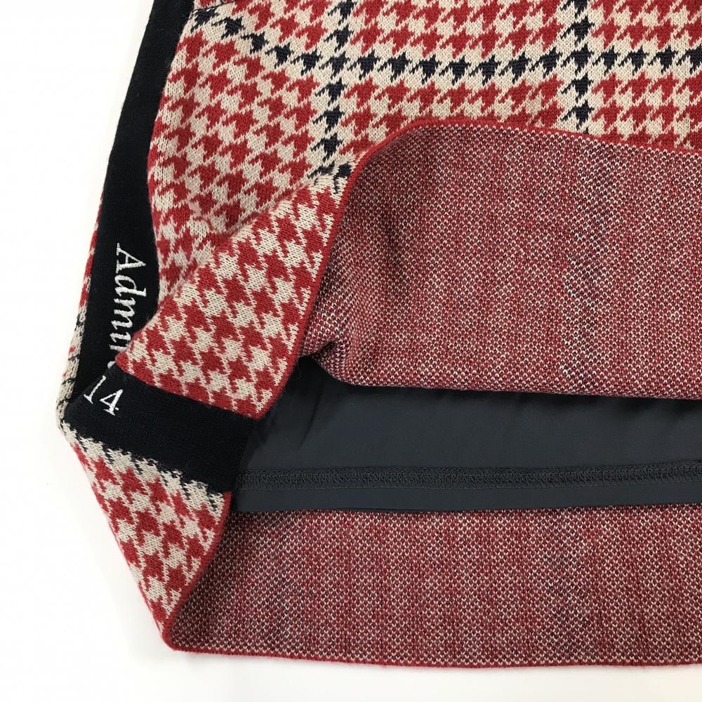 【美品】アドミラル ニットスカート レッド×ネイビー 千鳥格子 サイドライン 裏地付き レディース S ゴルフウェア Admiral