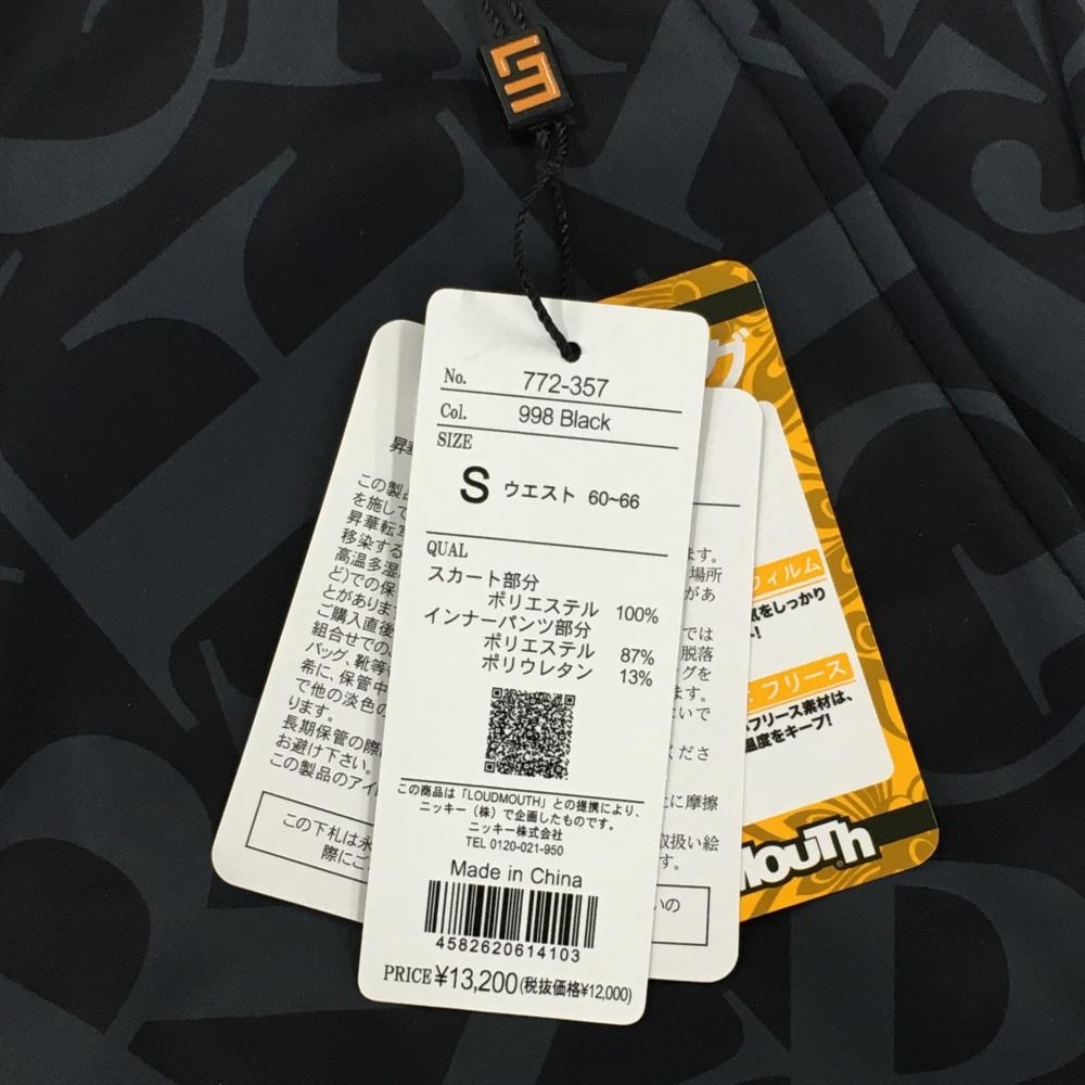 【新品】ラウドマウス スカート 黒×グレー 英字総柄 裏起毛 防風 内側インナーパンツ レディース S ゴルフウェア LOUDMOUTH