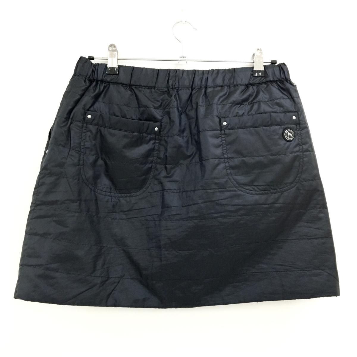 【美品】アダバット 中綿リバーシブルスカート 黒 カーゴ ウエストゴム レディース 42(XL) ゴルフウェア adabat
