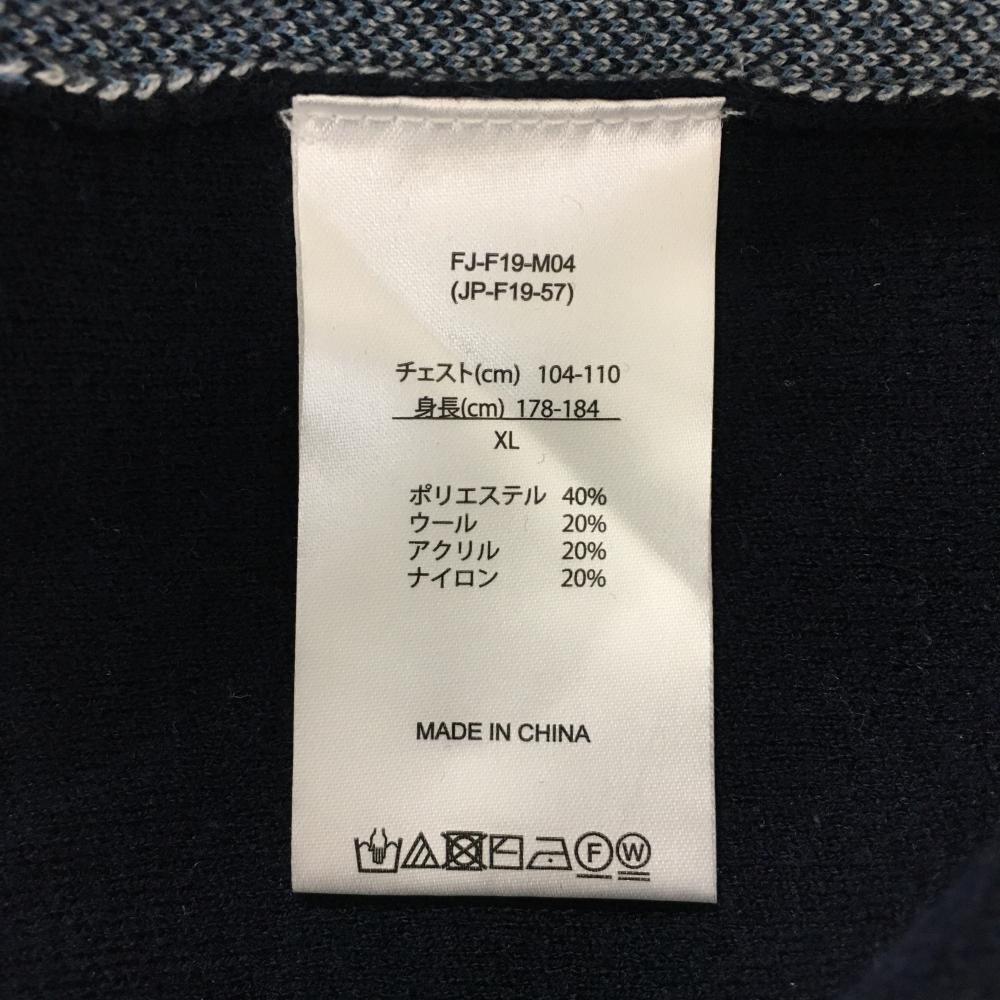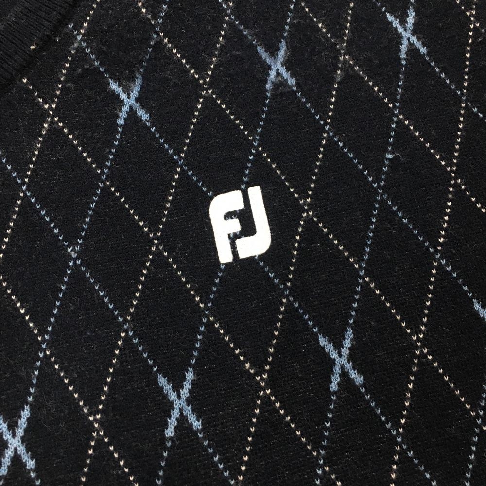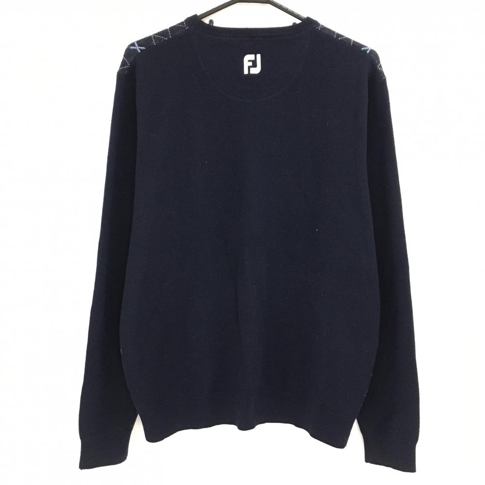 フットジョイ セーター ネイビー×ライトブルー 前身頃ダイヤ柄 ニット ウール混 Vネック メンズ XL ゴルフウェア FootJoy