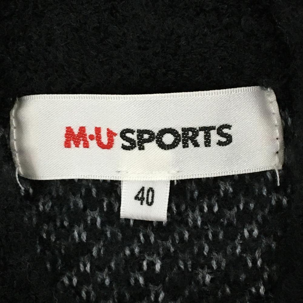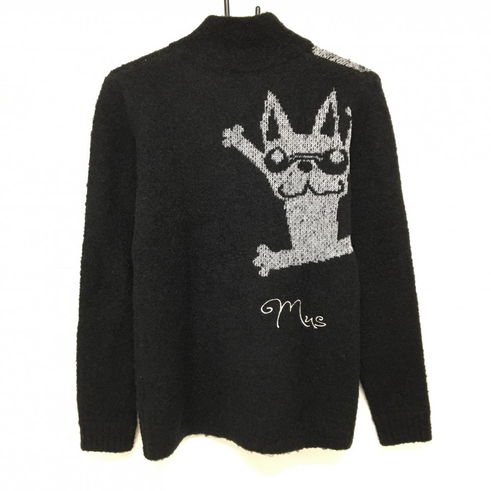 【美品】MUスポーツ セーター 黒×ライトグレー 犬柄 ウール混 ニット レディース 40(M) ゴルフウェア M・U SPORTS