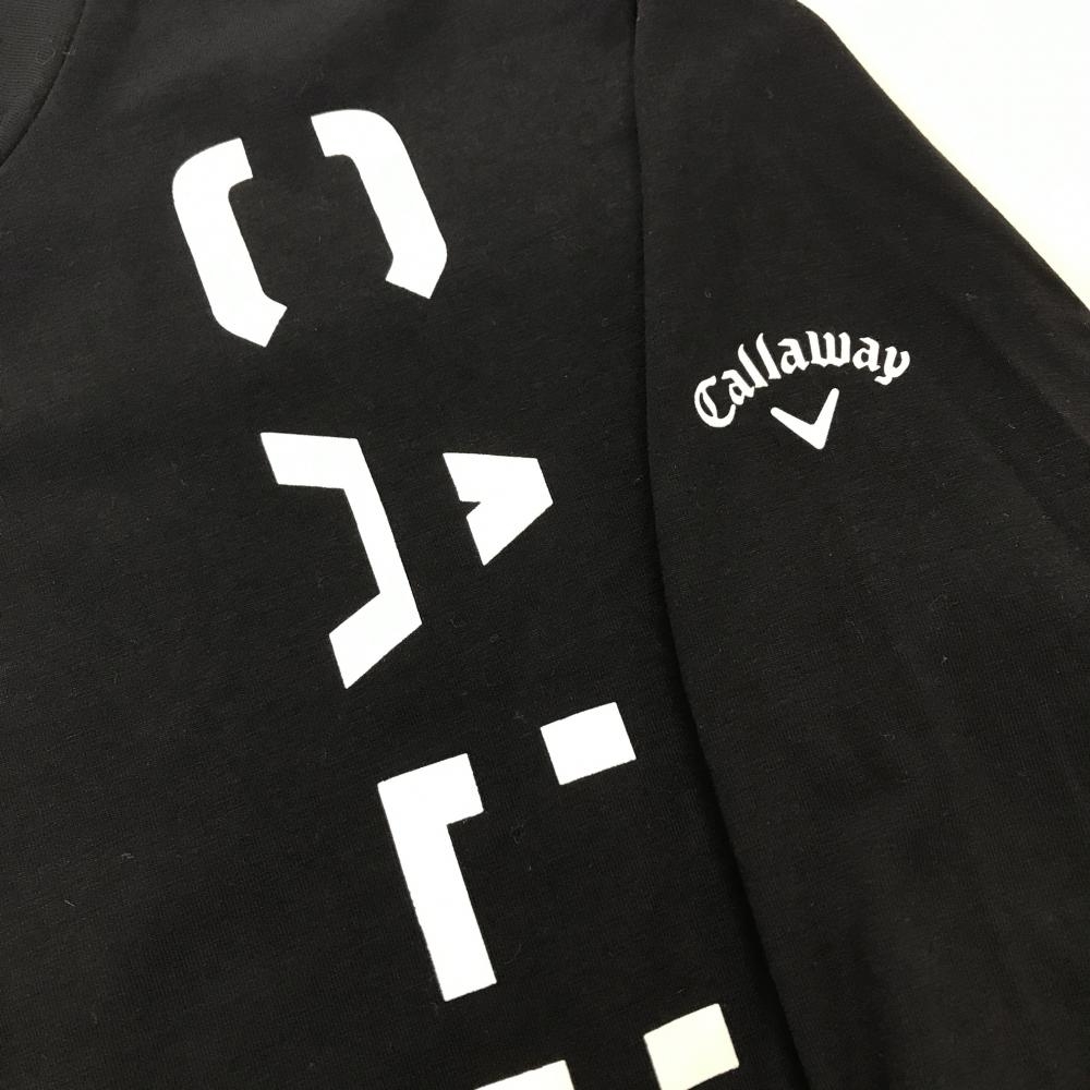 【超美品】キャロウェイ 長袖ハイネックシャツ 黒×白 ロゴ レディース M ゴルフウェア Callaway