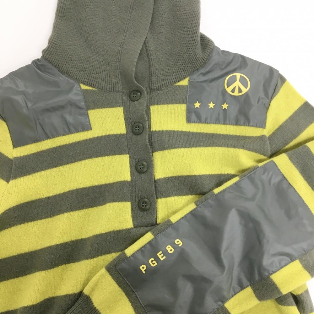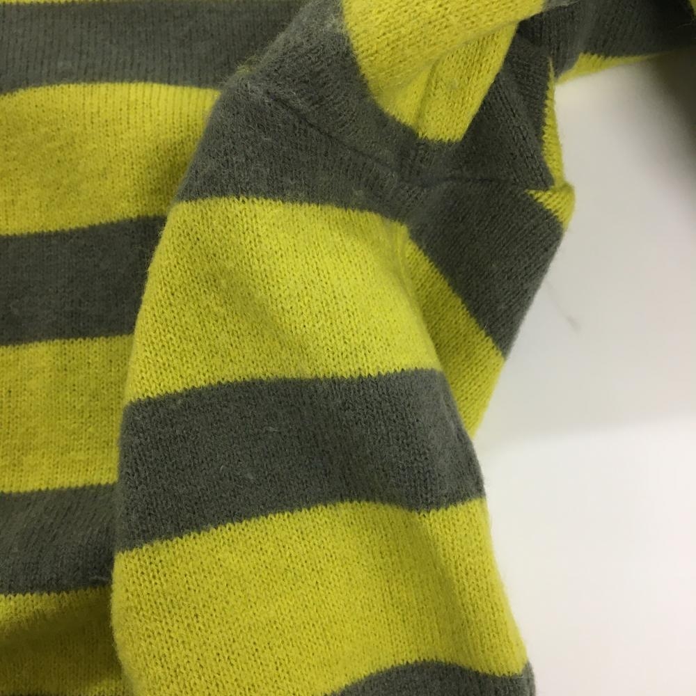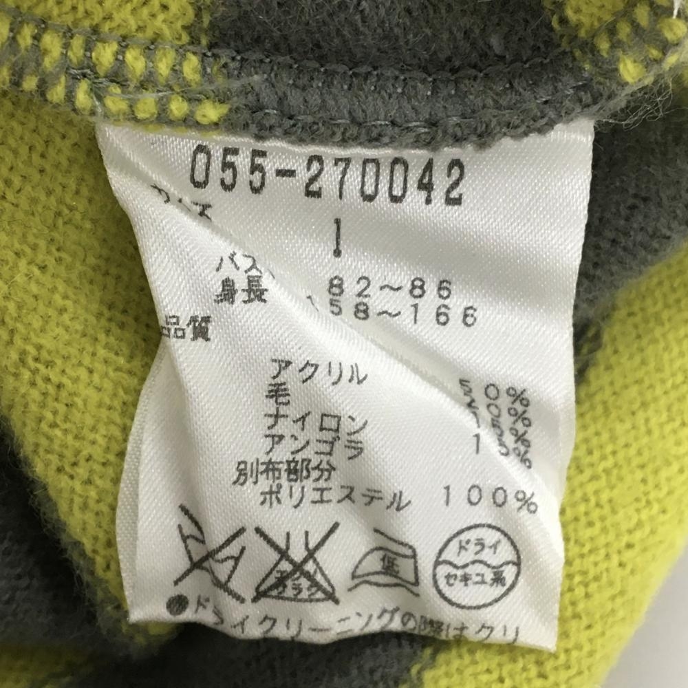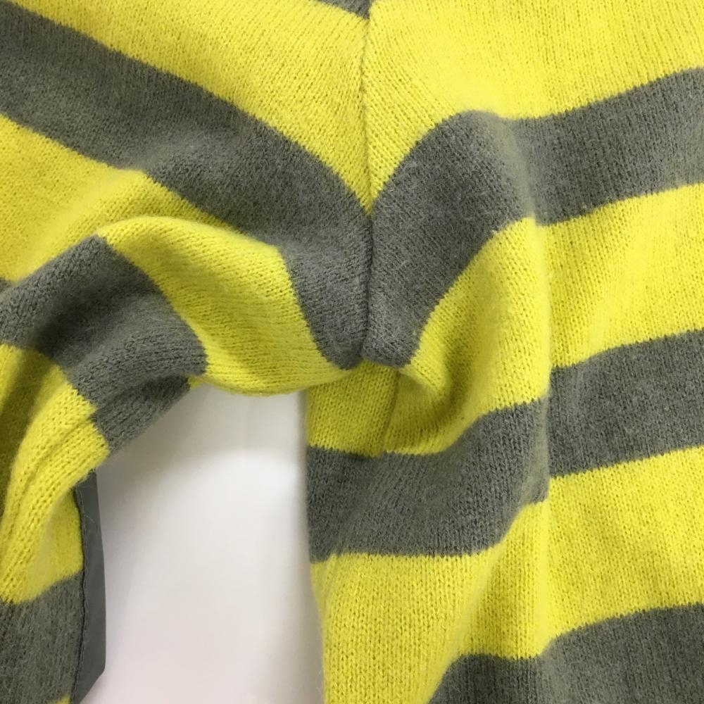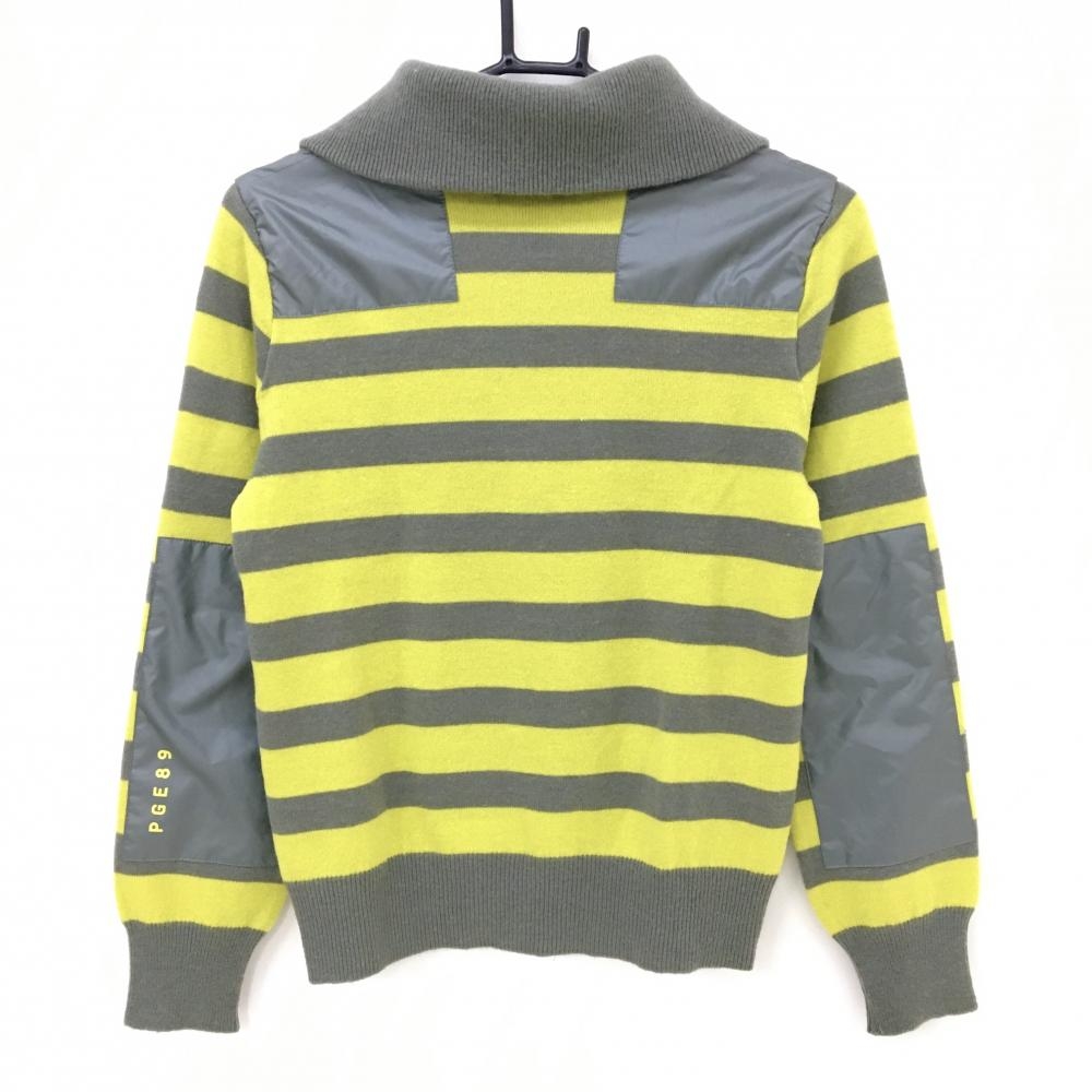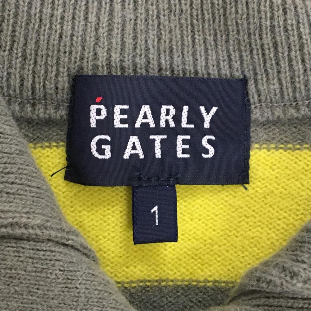 【美品】パーリーゲイツ 襟付セーター グレー×イエロー ボーダー アンゴラ混 ニット レディース 1(M) ゴルフウェア PEARLY GATES