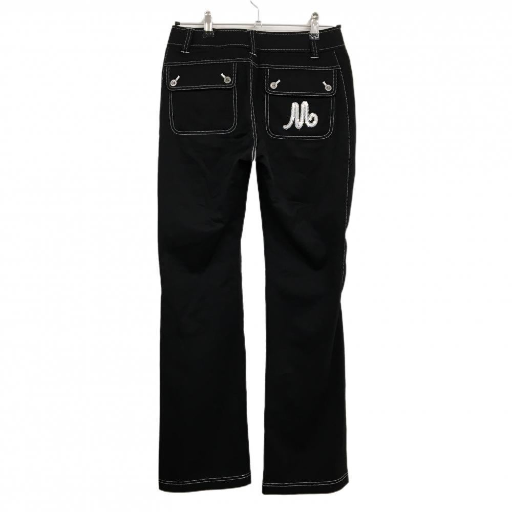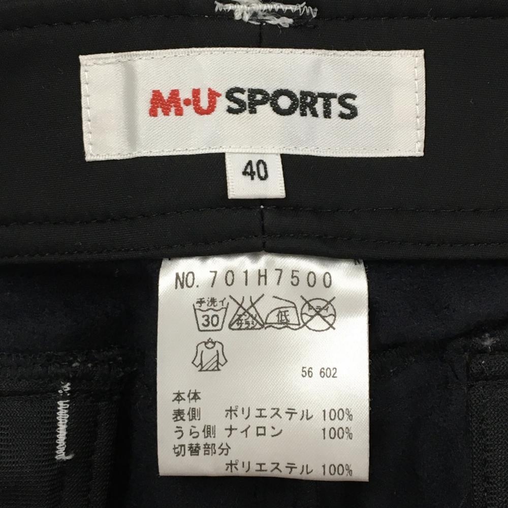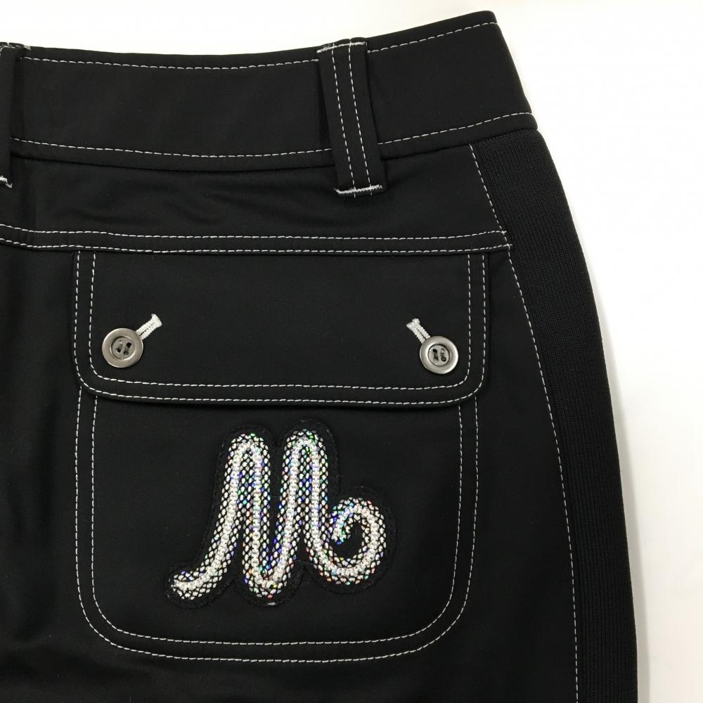 【超美品】MUスポーツ パンツ 黒×白ステッチ 裏起毛 サイドストレッチ ロゴスパンコール刺繍 レディース 40(M) ゴルフウェア M・U SPORTS