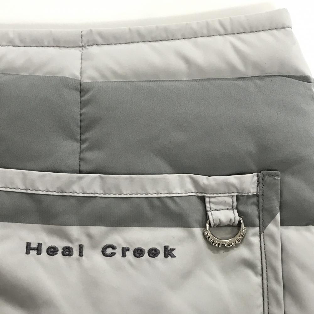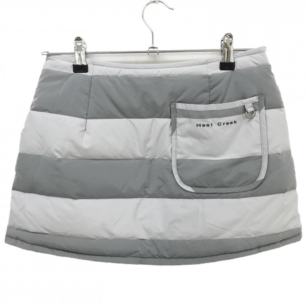 【美品】ヒールクリーク ダウンスカート グレー 太ボーダー 軽量 レディース 38(S) ゴルフウェア Heal Creek