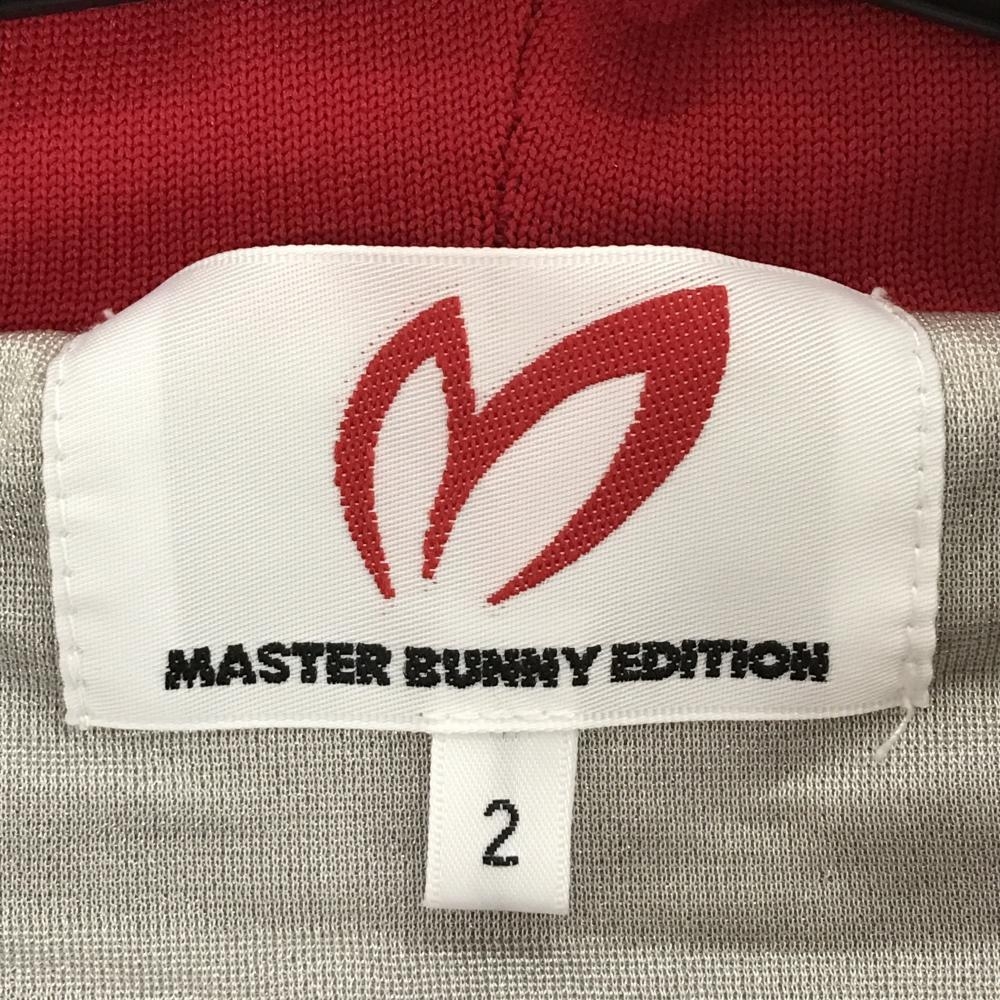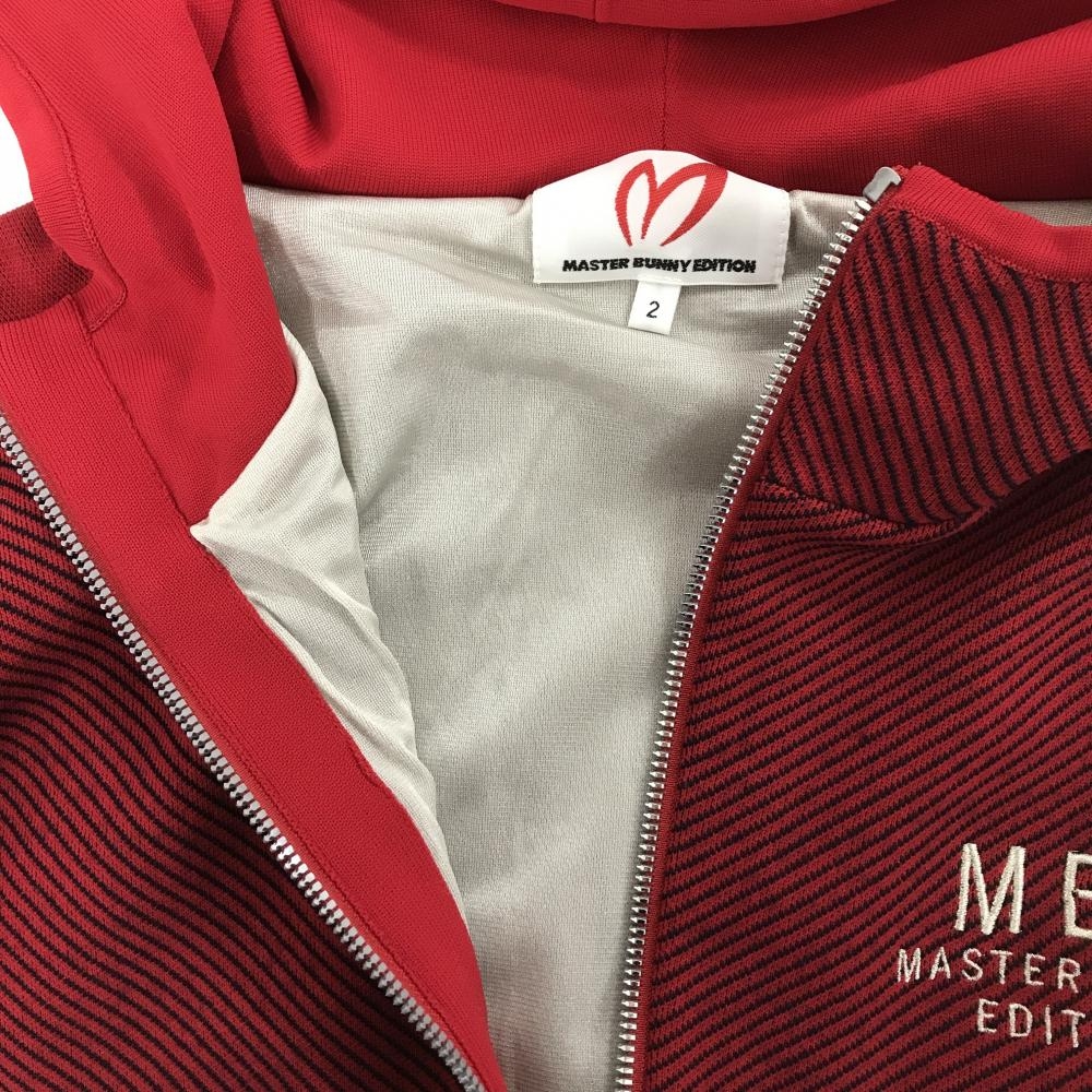 【超美品】マスターバニー ニットジップパーカー レッド×黒 一部斜めストライプ レディース 2(L) ゴルフウェア MASTER BUNNY EDITION