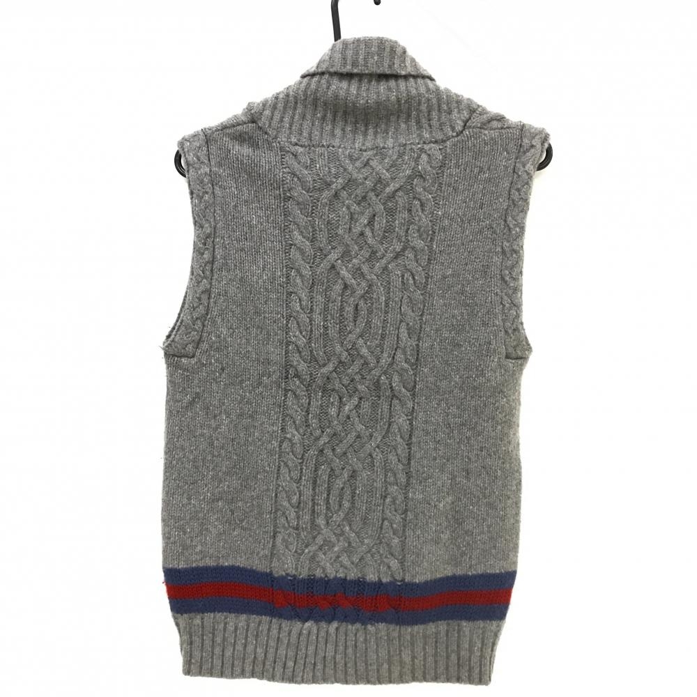 【超美品】ラッセルノ ジップニットベスト グレー×ブルー ワッペン メンズ 4(M) ゴルフウェア RUSSELUNO