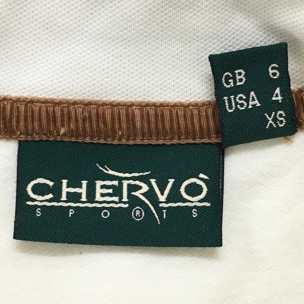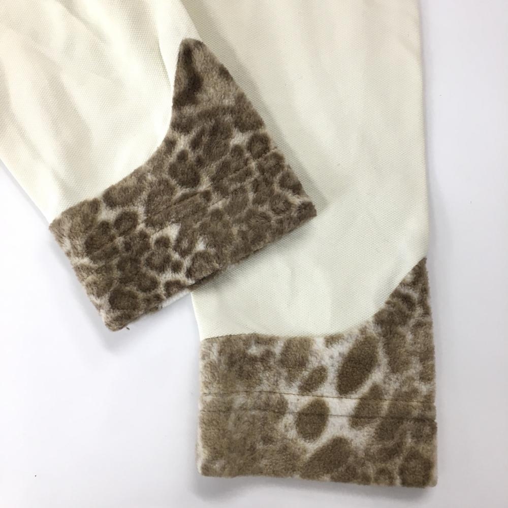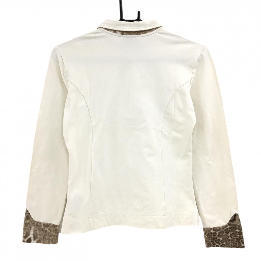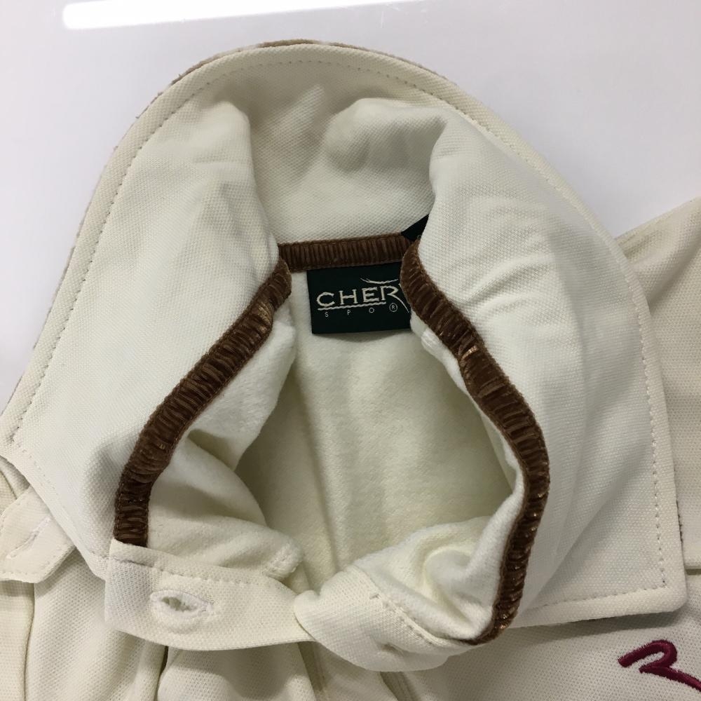 【美品】シェルボ 長袖ポロシャツ アイボリー×ブラウン 襟裏・袖口アニマル柄起毛 裏微起毛 レディース XS ゴルフウェア CHERVO