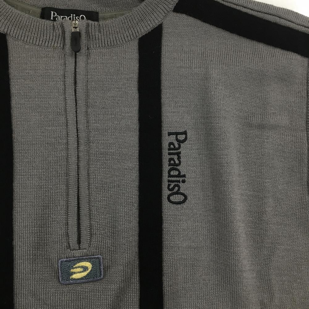 【超美品】パラディーゾ ニットベスト グレー×黒 ハーフジップ ウール混 メンズ M ゴルフウェア Paradiso