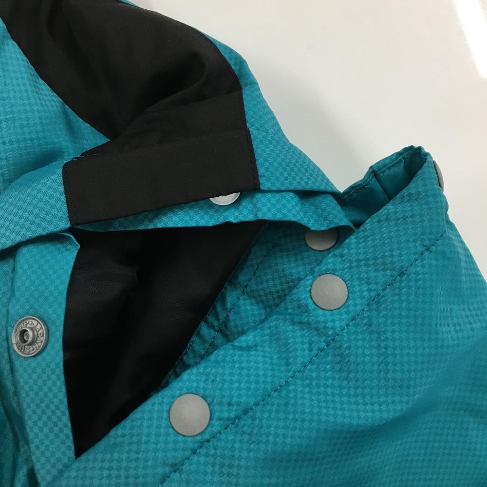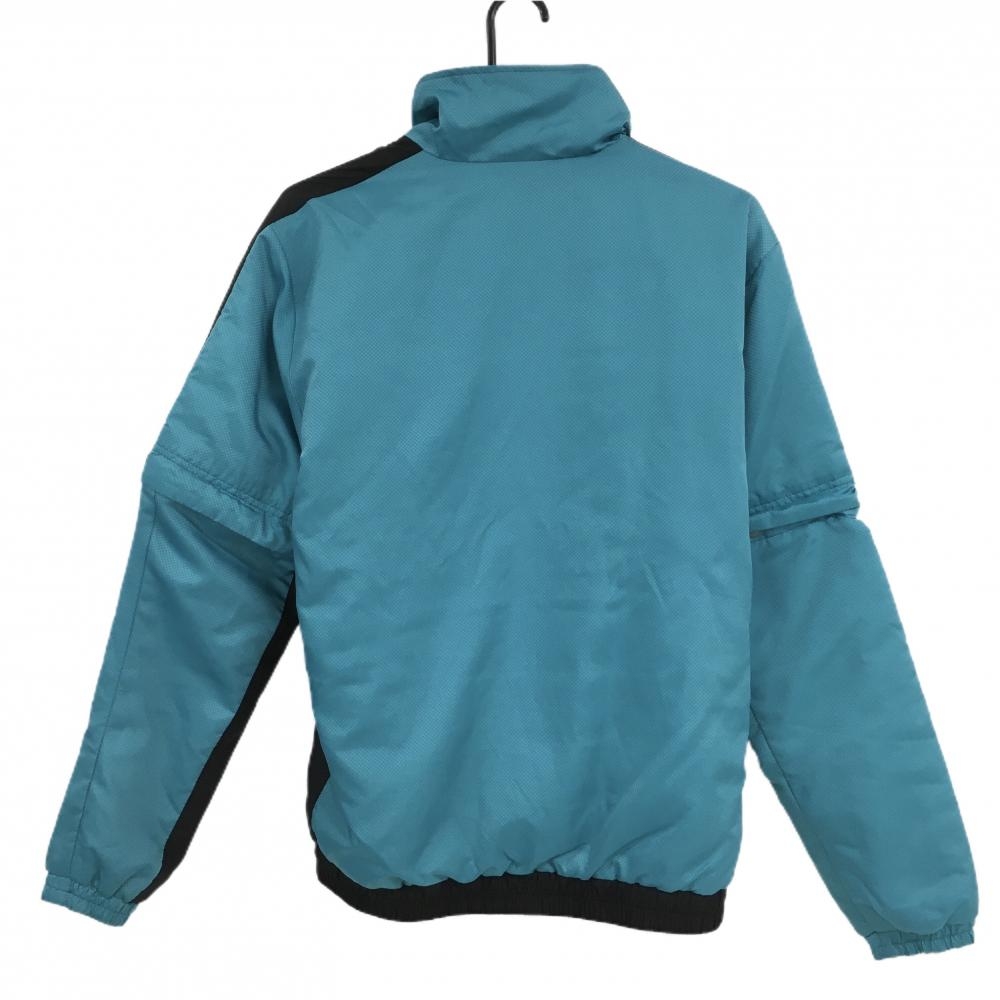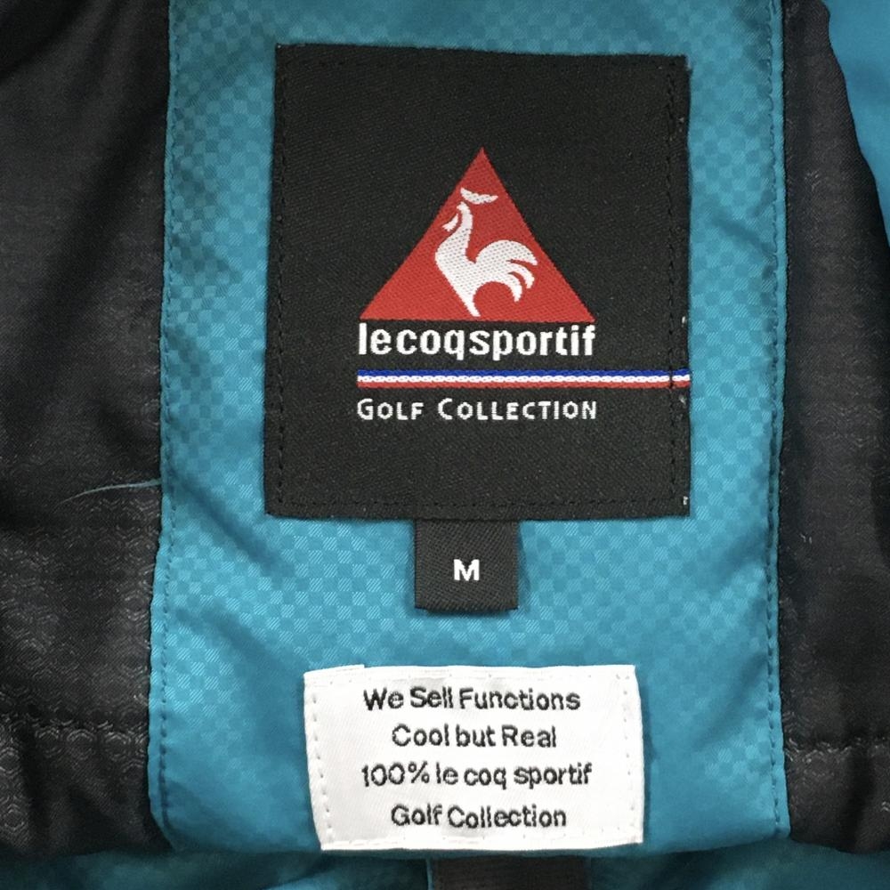 【美品】ルコックゴルフ 2WAY中綿ジャケット ブルーグリーン×黒 地模様 袖着脱可 メンズ M ゴルフウェア le coq sportif