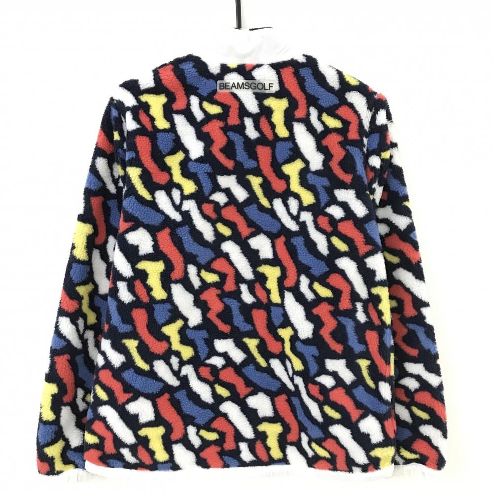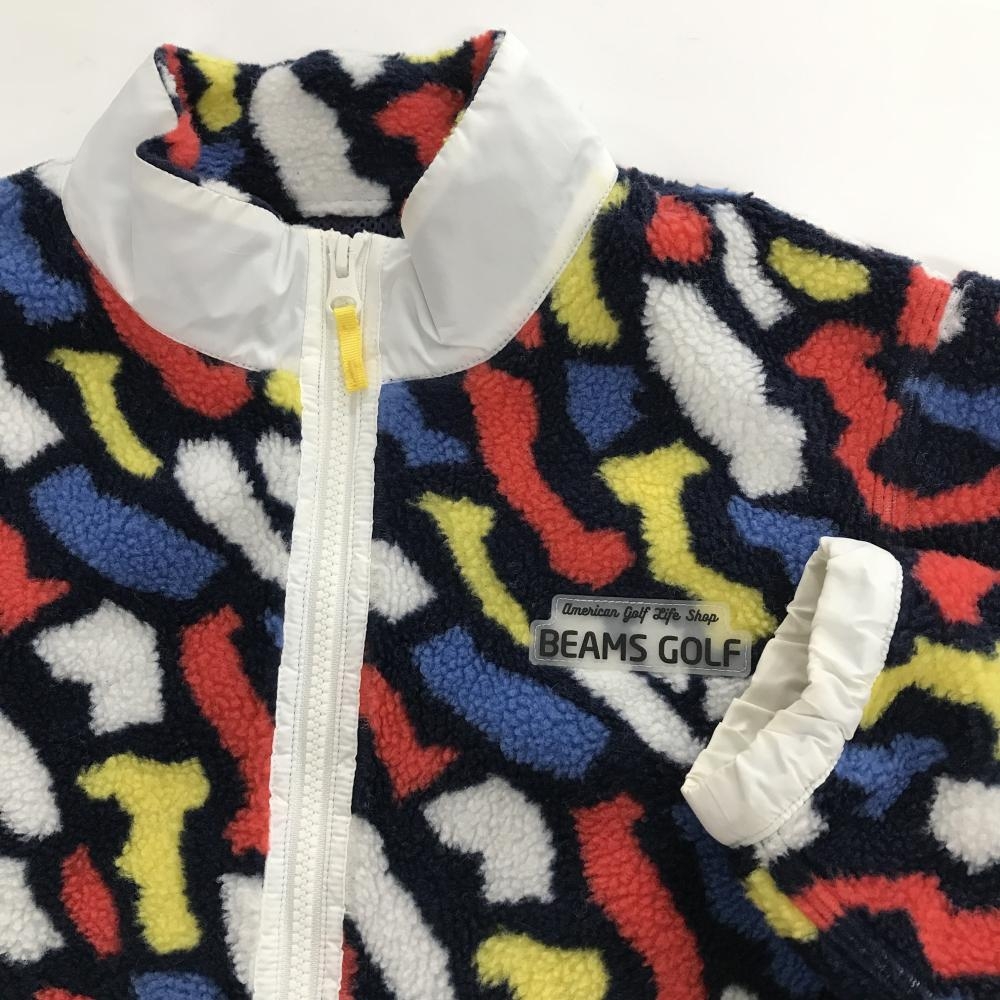 ビームスゴルフ ボアジャケット 白×マルチカラー 総柄 メッシュ裏地 レディース L ゴルフウェア BEAMS GOLF