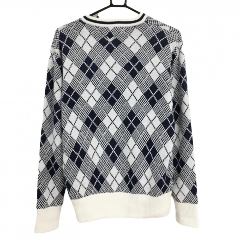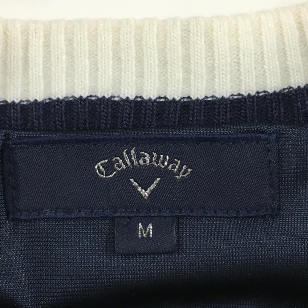 【美品】キャロウェイ セーター 白×ネイビー アーガイル 裏地付 Vネック ニット メンズ M ゴルフウェア Callaway