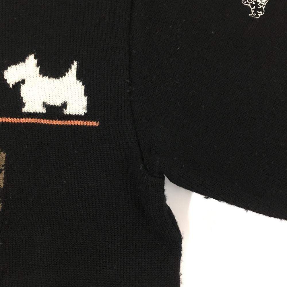 ブラックアンドホワイト セーター 黒×ベージュ フロントテリア柄 ウール混 レディース L ゴルフウェア Black&White