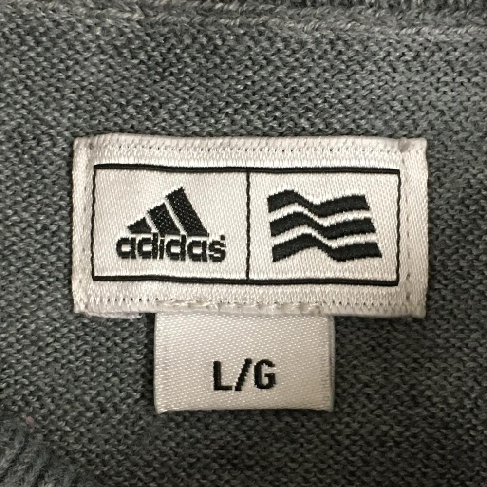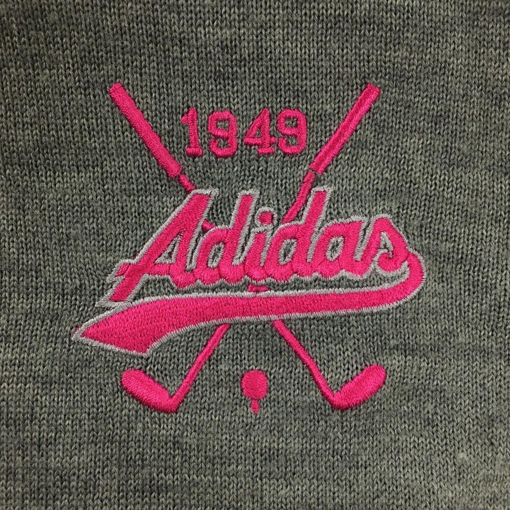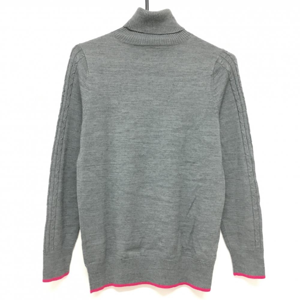 アディダス タートルネックセーター グレー×ピンク 袖ケーブル編み ウール混 ニット レディース L/G ゴルフウェア adidas