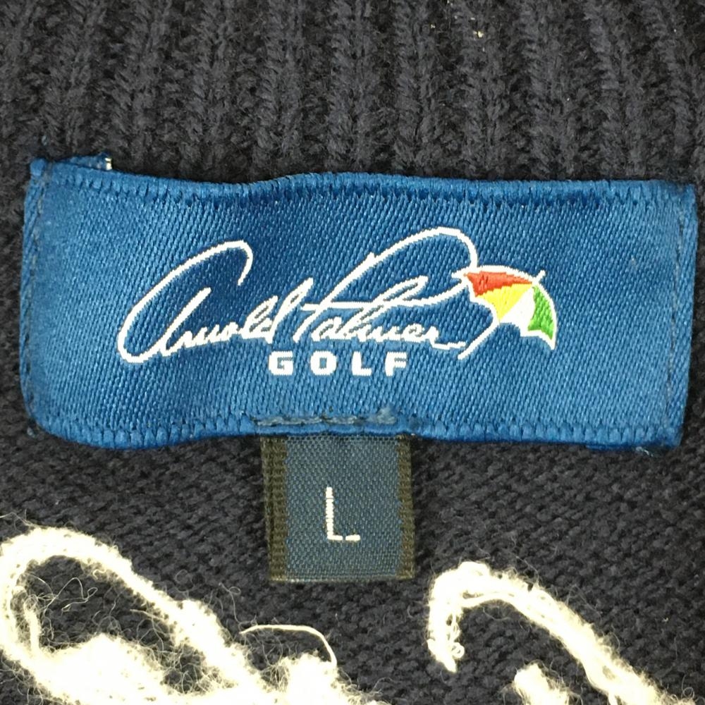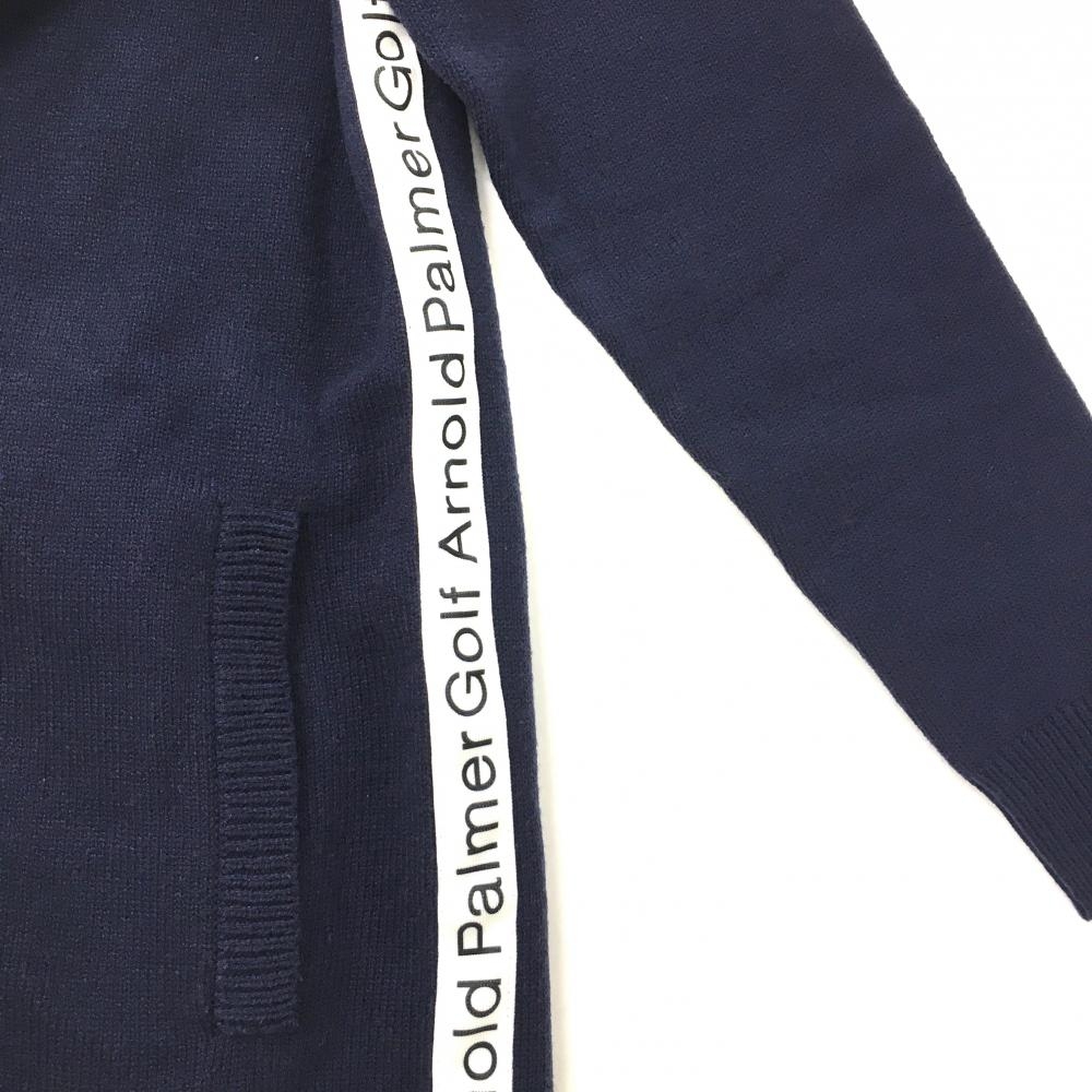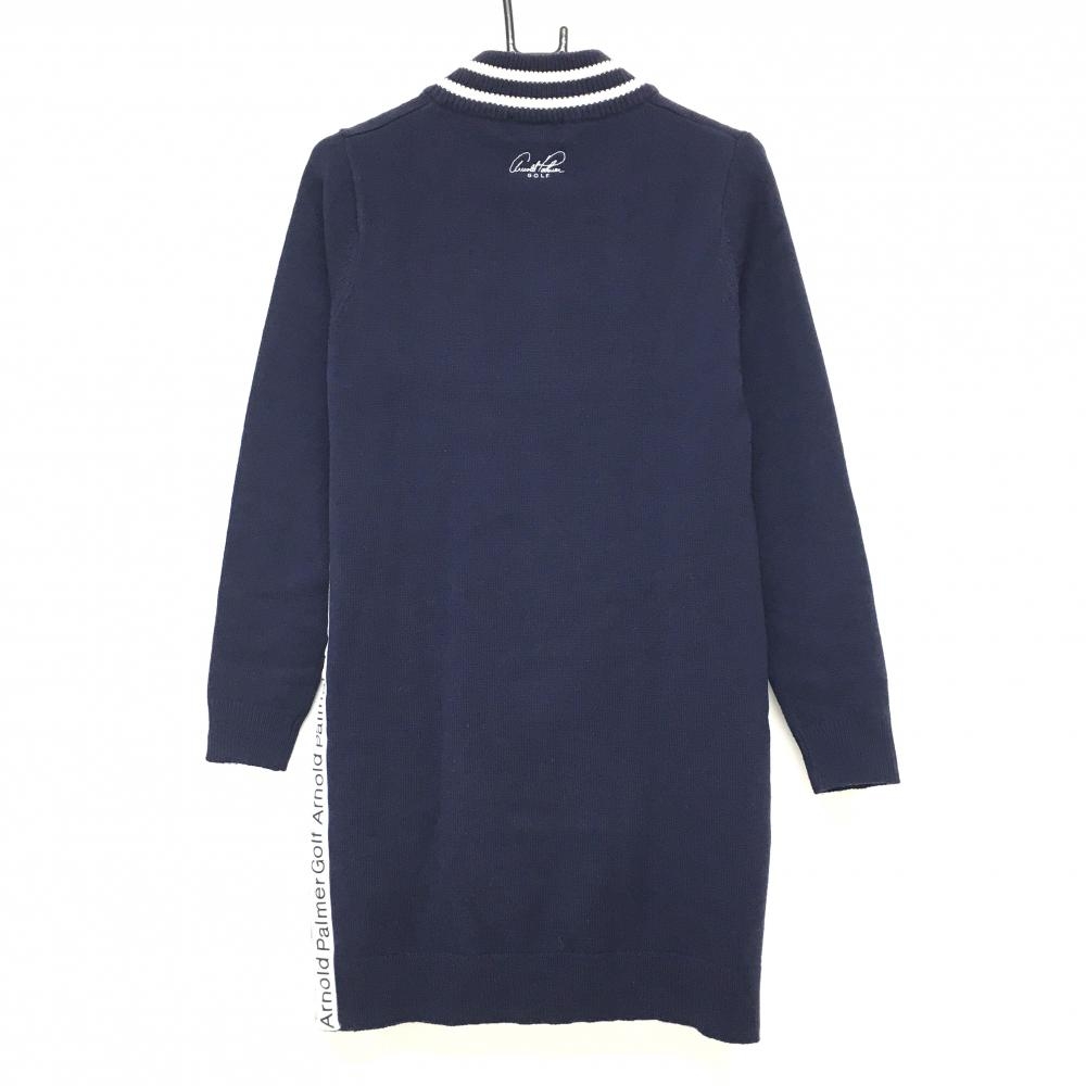 アーノルドパーマー ニットハイネックワンピース ネイビー×白 サイドロゴライン ハーフジップ レディース L ゴルフウェア Arnold Palmer