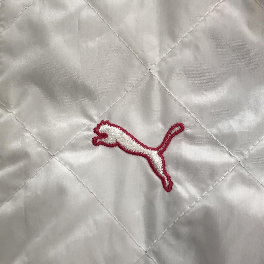 プーマ フード付き中綿ベスト 白 薄手 キルティング 裏地チェック レディース O ゴルフウェア PUMA