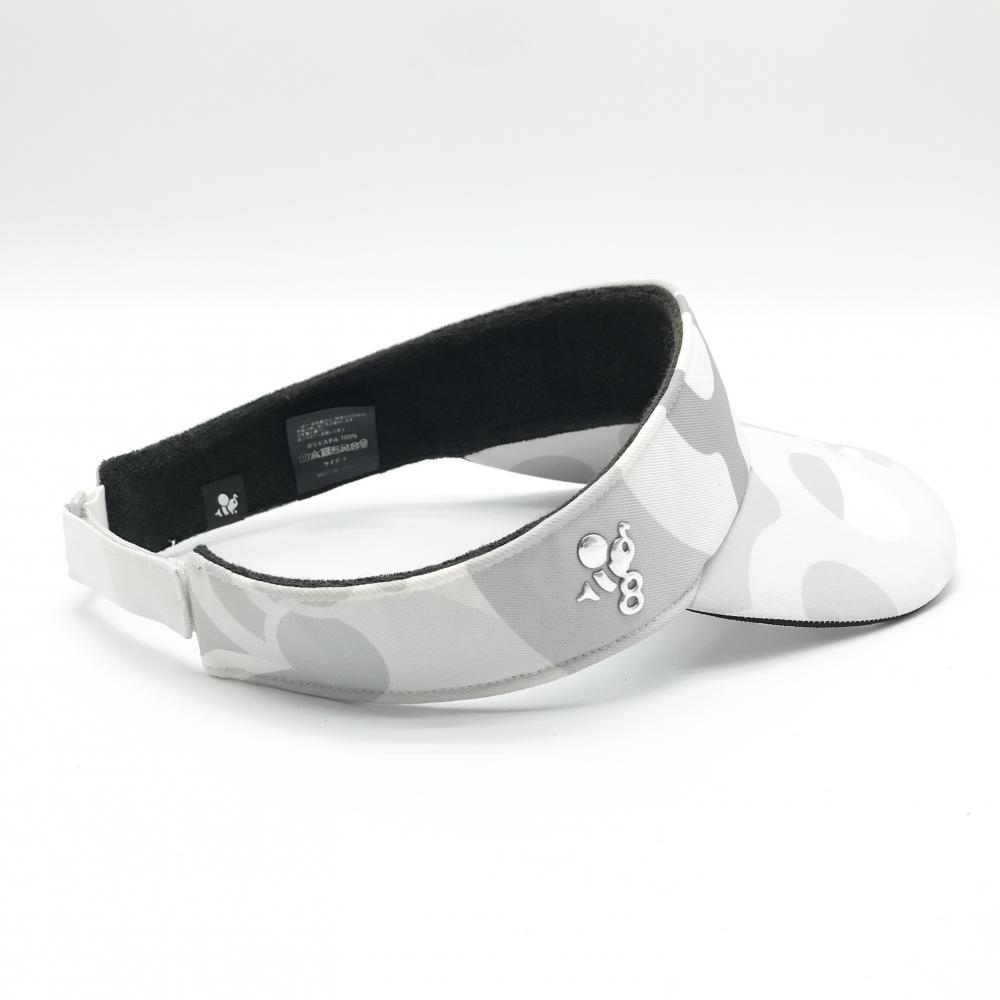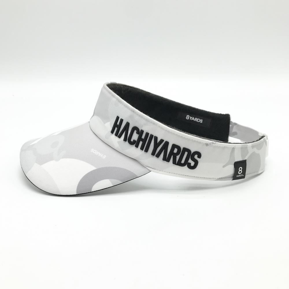 【美品】ハチヤーズ サンバイザー グレー×白 カモフラ 迷彩 内側パイル地 F ゴルフウェア 8YARDS