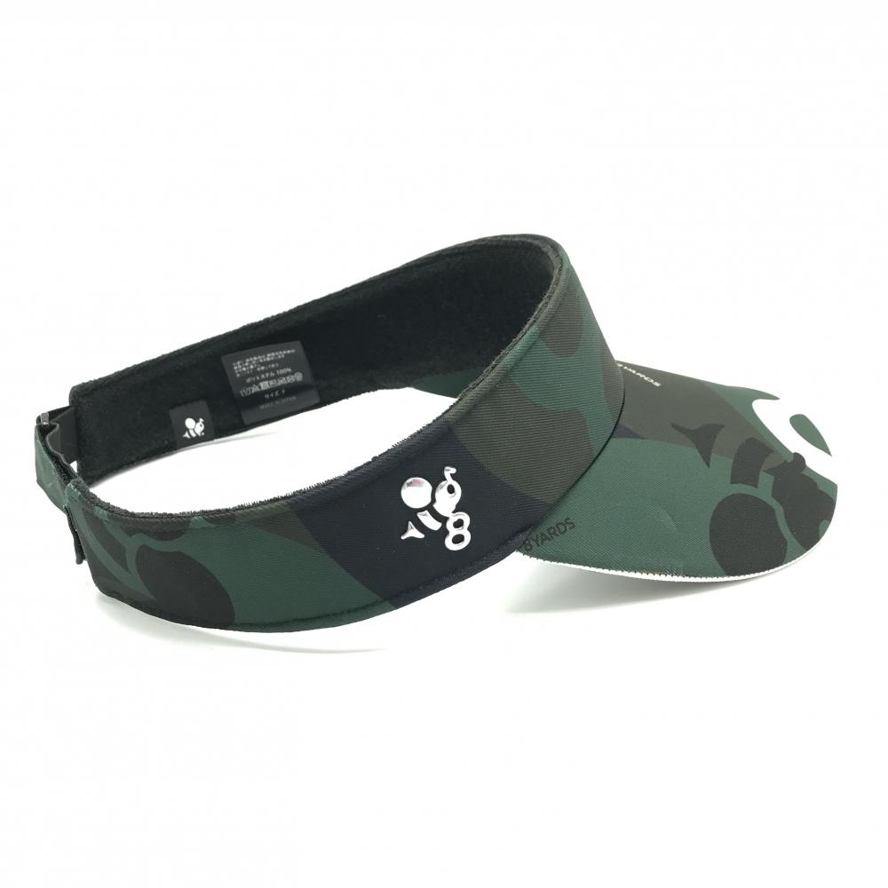 ハチヤーズ サンバイザー グリーン×黒 カモフラ 迷彩 内側パイル地 F ゴルフウェア 8YARDS
