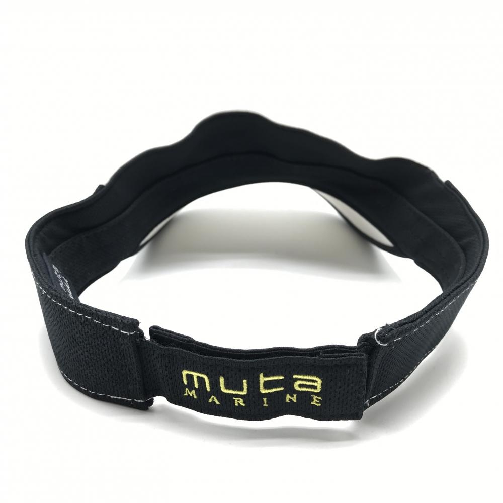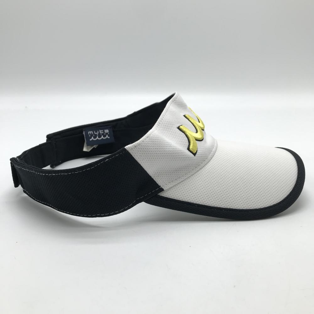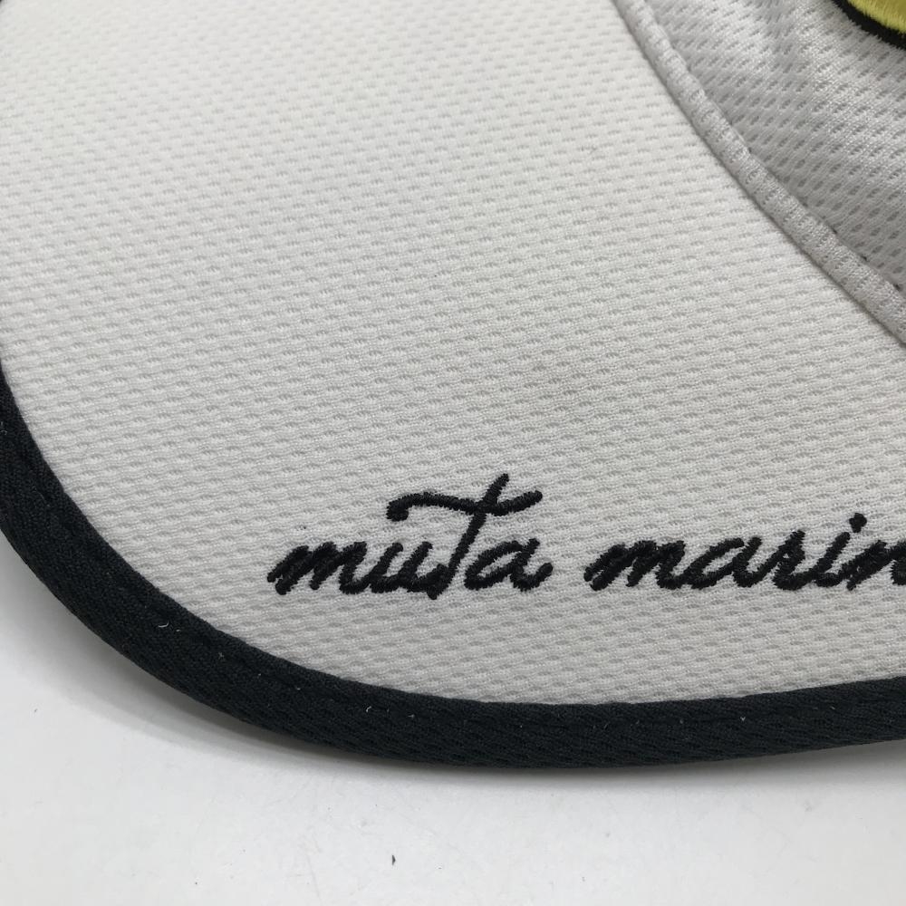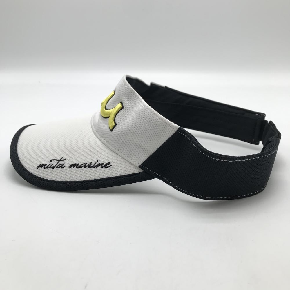 【美品】ムータマリン サンバイザー 白×黒 立体ロゴイエロー 57~59cm ゴルフウェア muta