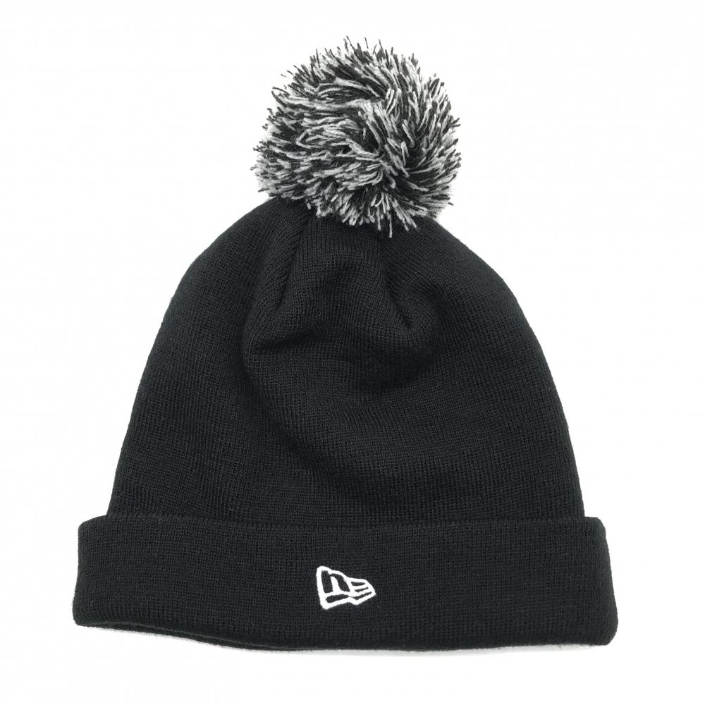 【美品】ビームスゴルフ×ニューエラ ニット帽 黒×白 ボンボン付き ゴルフウェア BEAMS GOLF