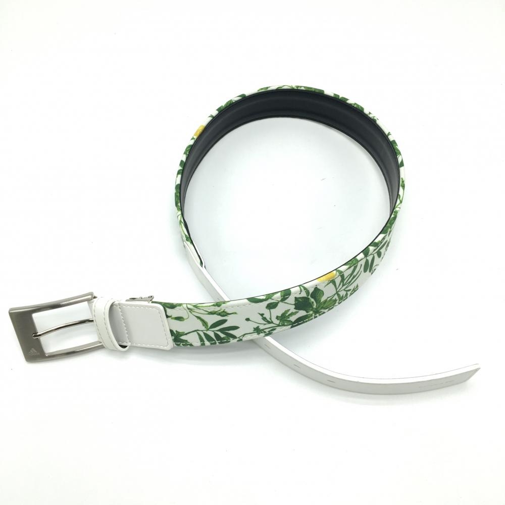 【美品】アディダス ベルト 白×グリーン リーフ柄 レディース ゴルフウェア adidas