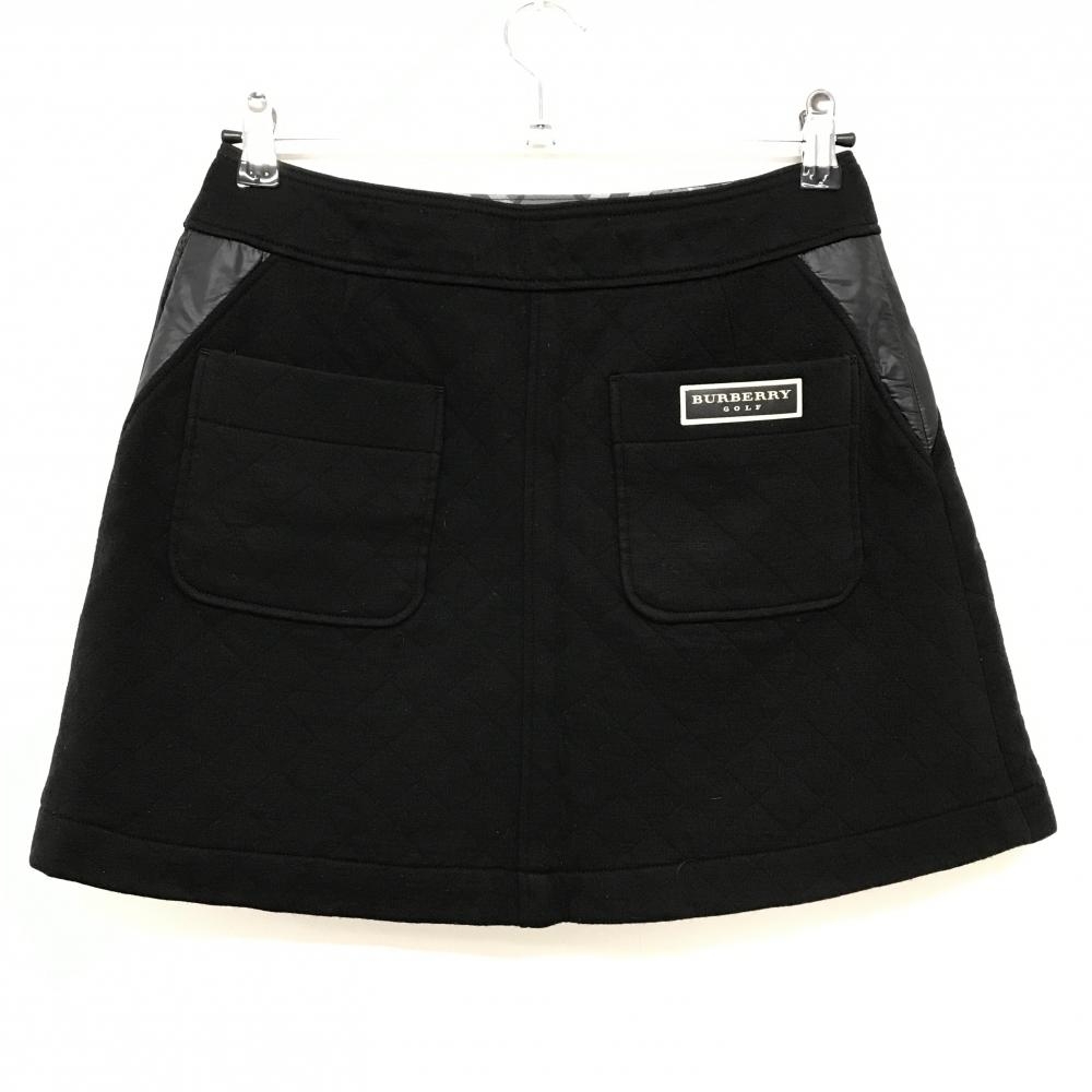 【美品】バーバリーゴルフ スカート 黒 キルティング風 裏地付 ウール混 レディース 9 ゴルフウェア BURBERRY GOLF