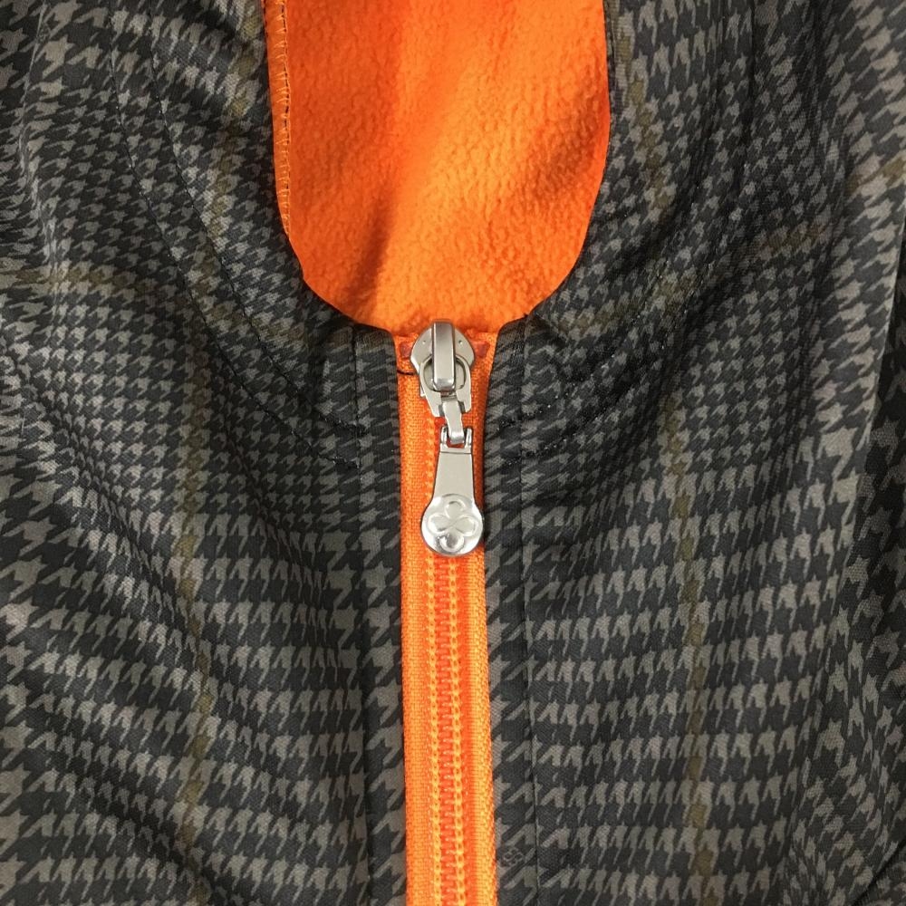【超美品】マリクレール フード付きジャケット グレー×ダークグレー グレンチェック 裏起毛 レディース L ゴルフウェア marie claire