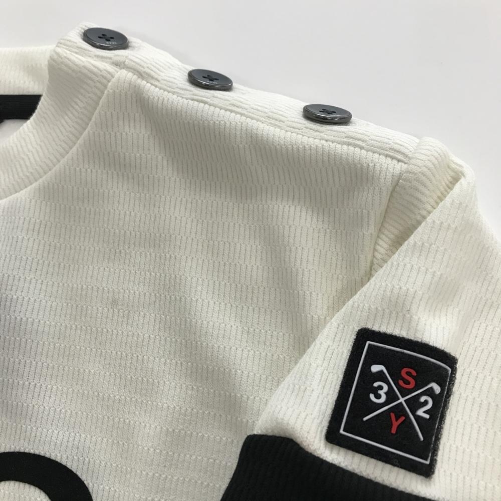 【新品】SY32 ハイネックトレーナー 白×黒 ニット 裏起毛 ビッグロゴ メンズ L ゴルフウェア 2023年モデル SY32 BY SWEET YEARS