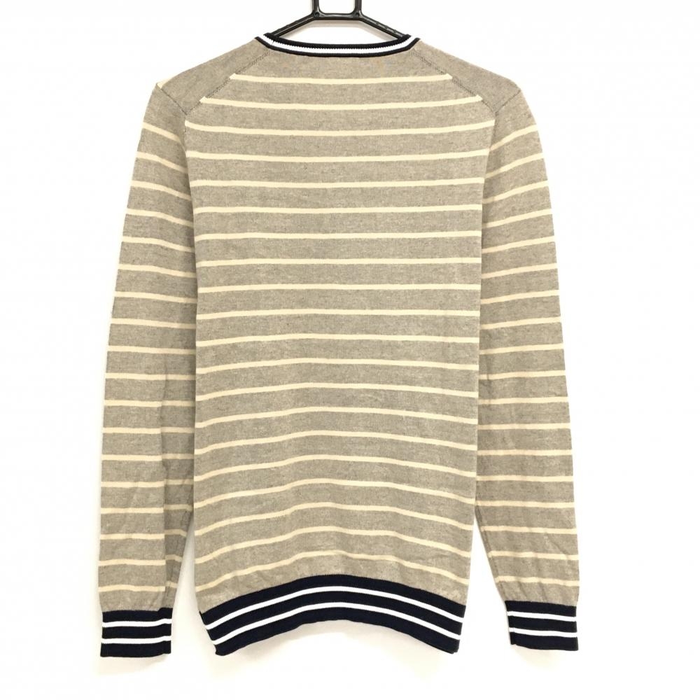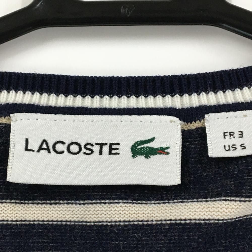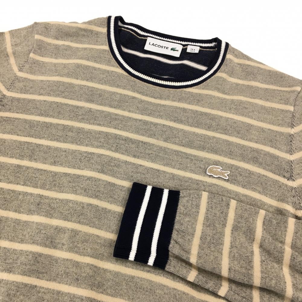 【超美品】ラコステ セーター グレー×ベージュ ボーダー ニット メンズ US-S ゴルフウェア LACOSTE