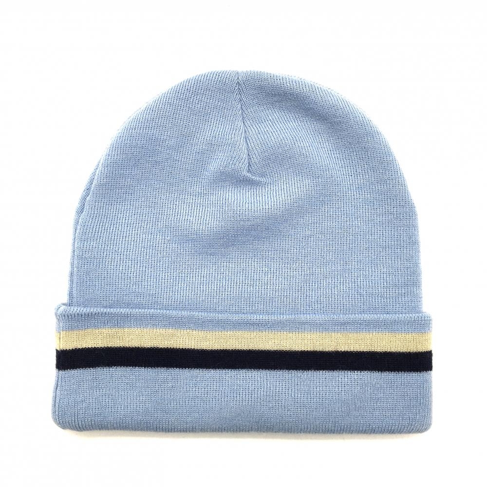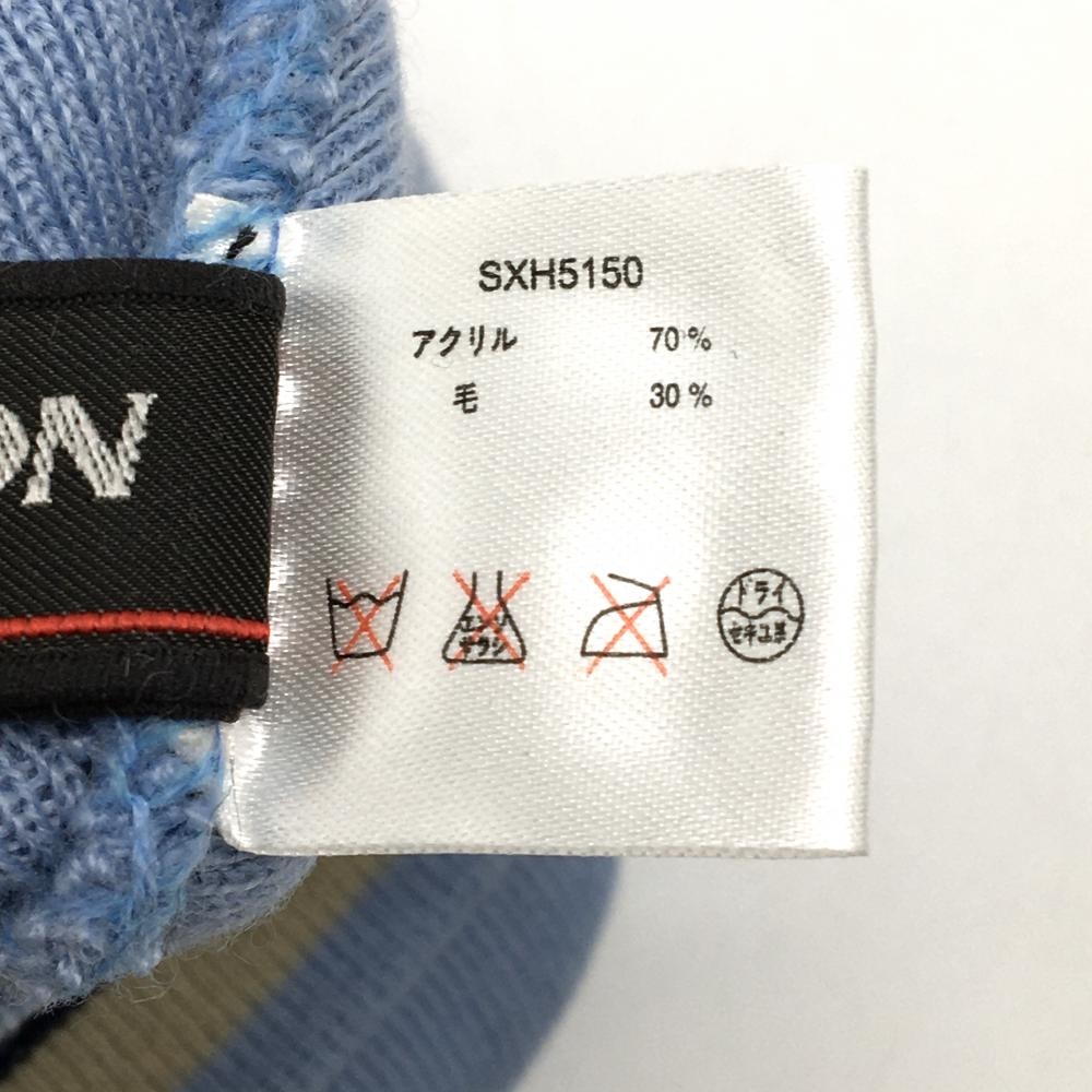 【超美品】スリクソン ニット帽 ライトブルー×ベージュ ライン ウール混 ゴルフウェア SRIXON