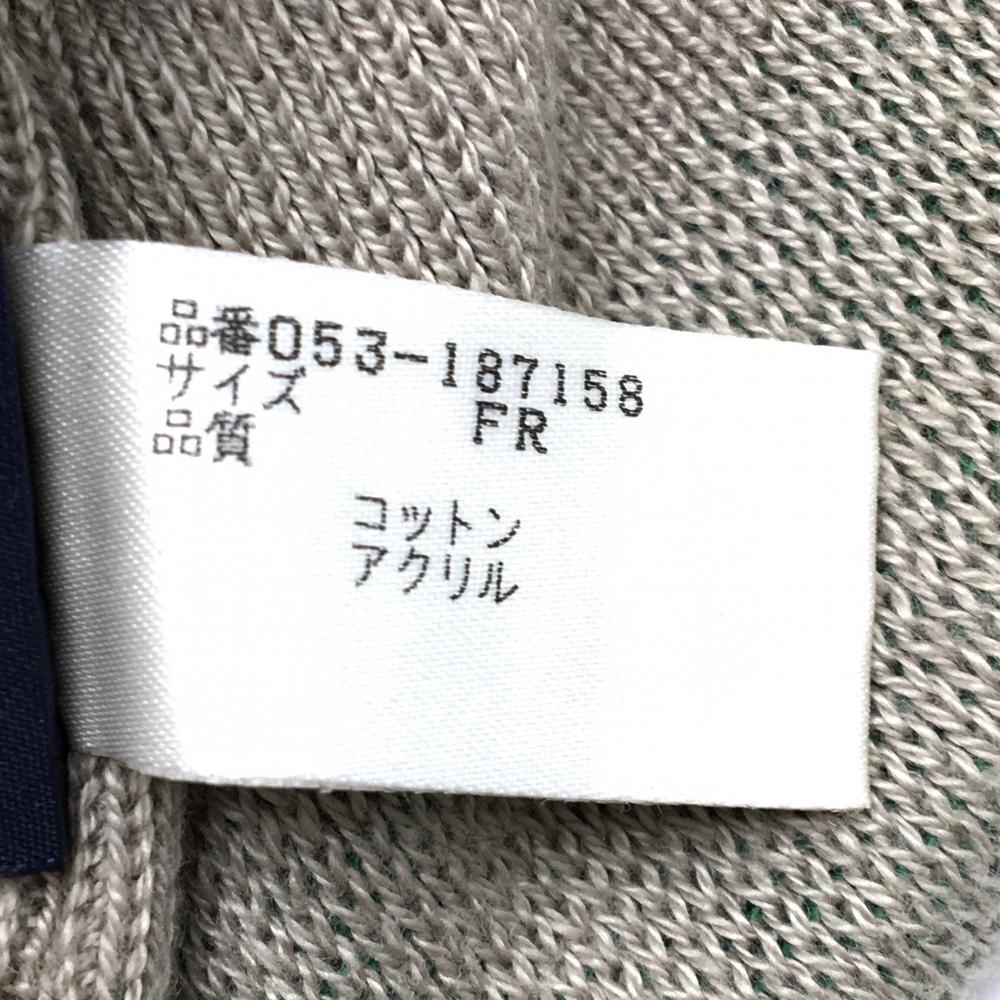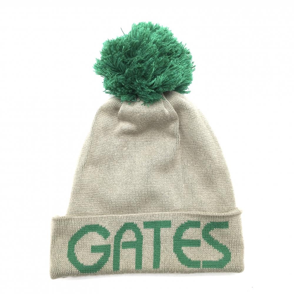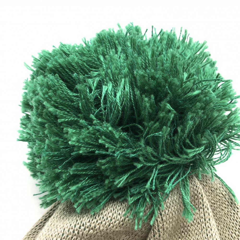 【美品】パーリーゲイツ ニット帽 ベージュ×グリーン ロゴ ポンポン付 FR ゴルフウェア PEARLY GATES