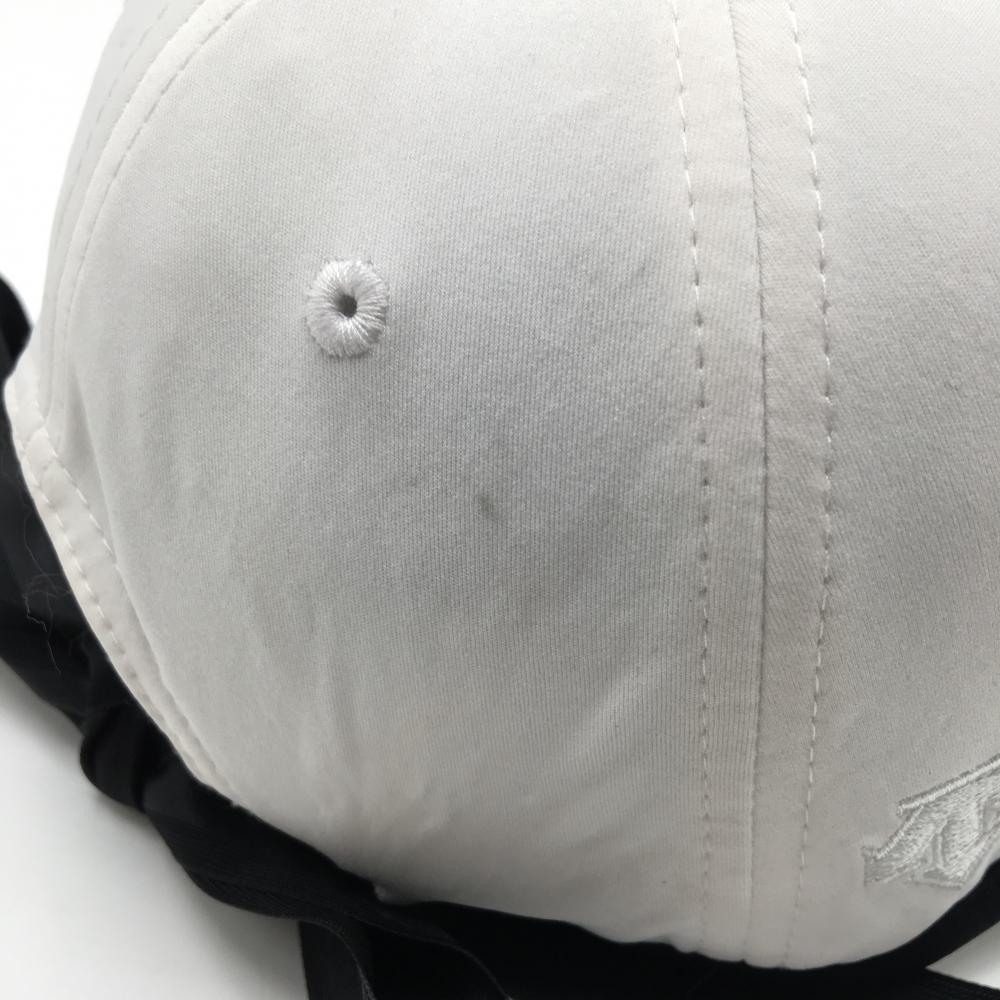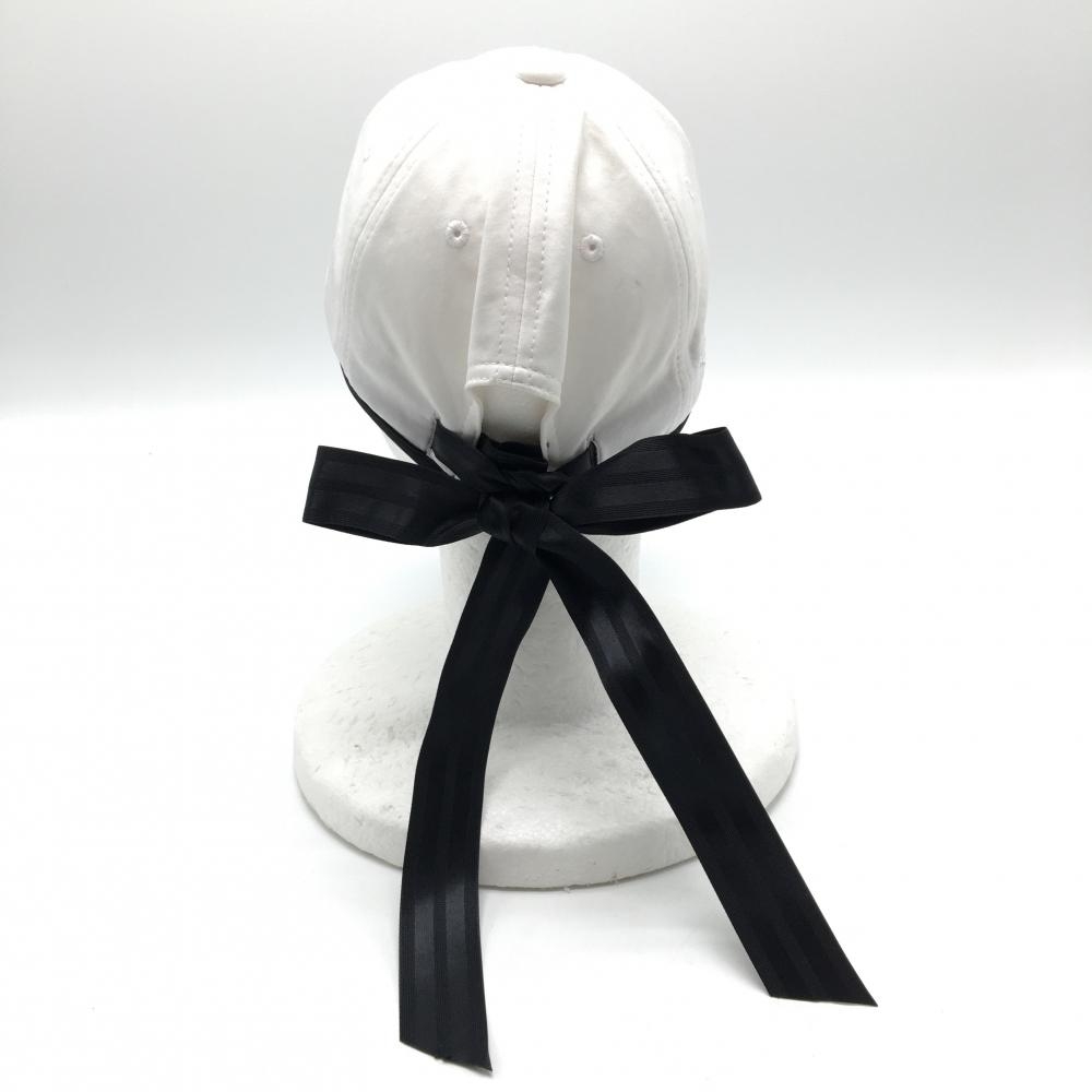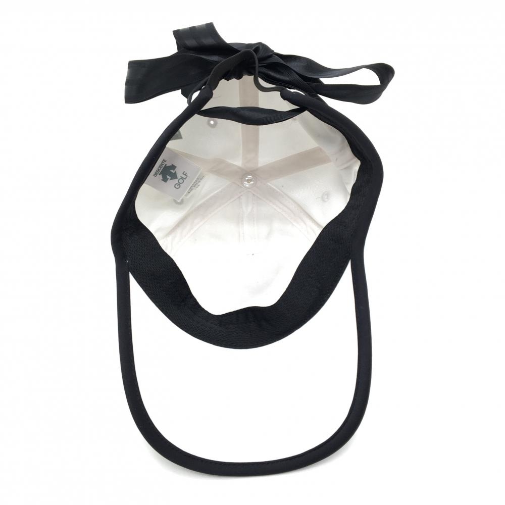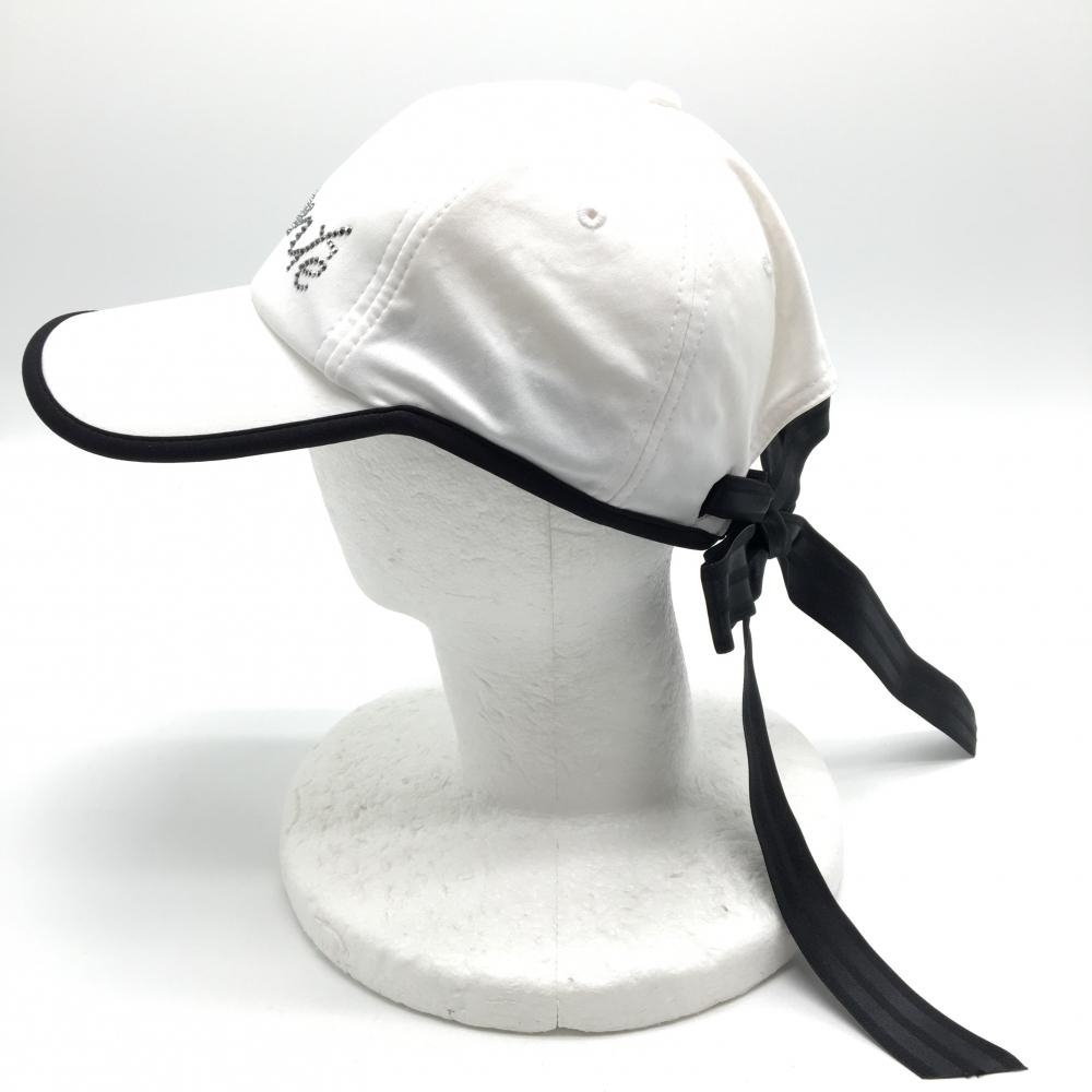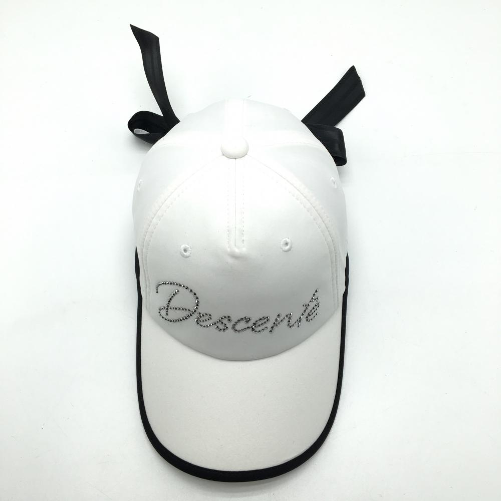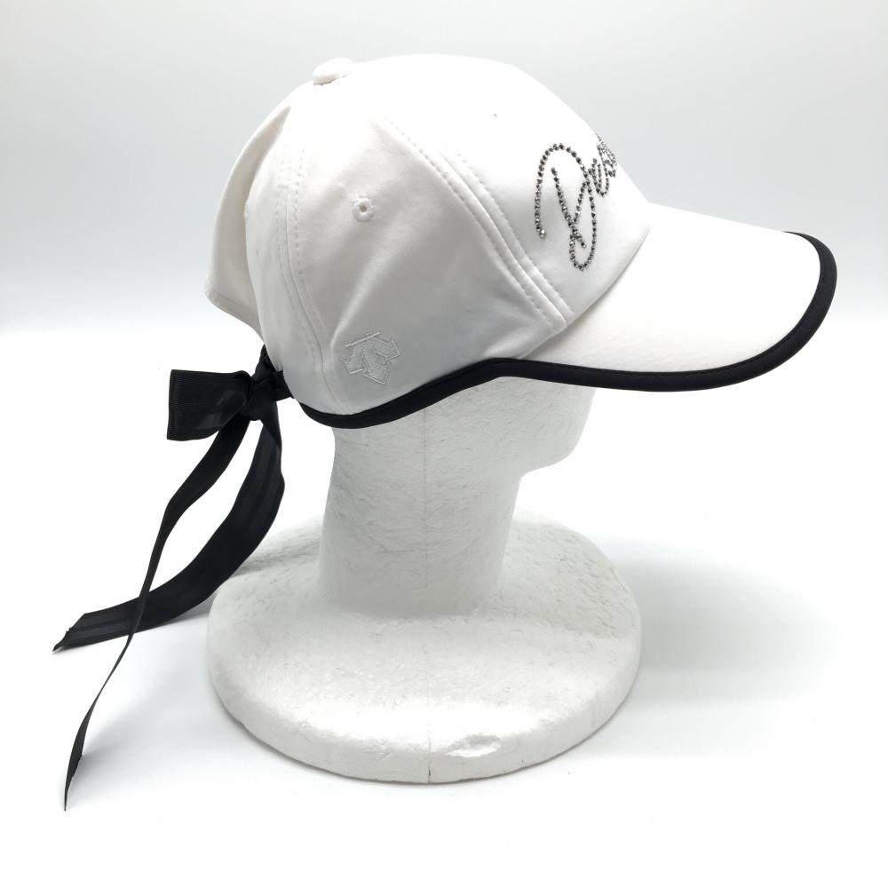 【美品】デサントゴルフ LUXE COLLECTION キャップ 白×黒 リボン スワロフスキー 中田英寿 レディース F(55-57cm) ゴルフウェア DESCENTE