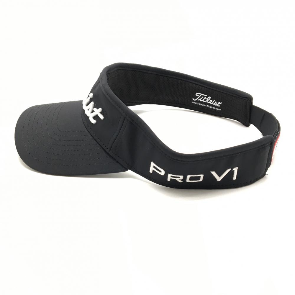 【美品】タイトリスト サンバイザー 黒×白 立体ロゴ PRO V1 フリー(57-59cm) ゴルフウェア TITLEIST