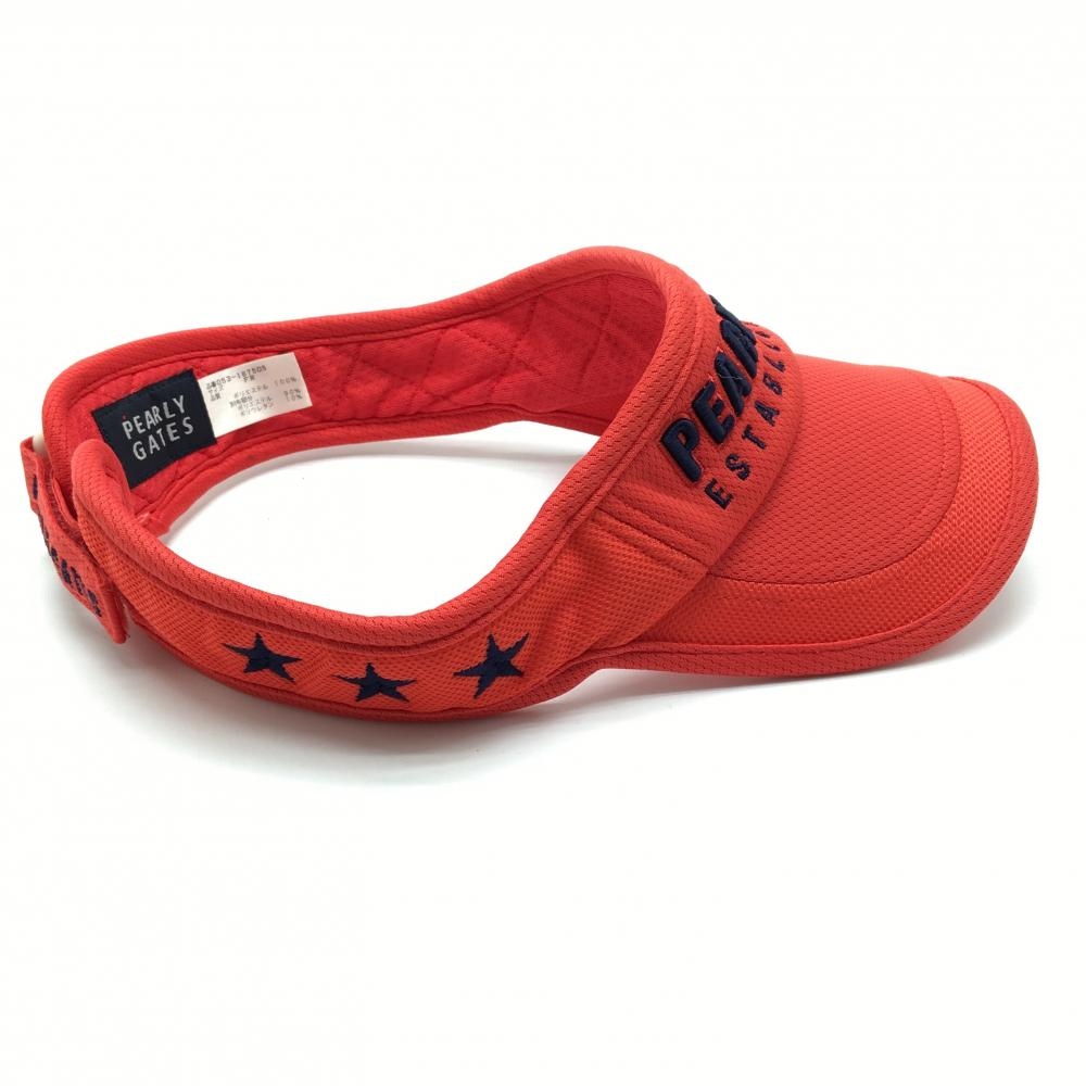 【超美品】パーリーゲイツ サンバイザー レッド×ネイビー ロゴ刺しゅう FR ゴルフウェア PEARLY GATES