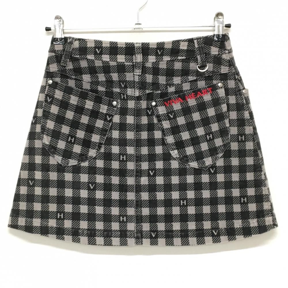 ビバハート スカート 黒×グレー チェック コーデュロイ ストレッチ レディース 38(S) ゴルフウェア VIVA HEART