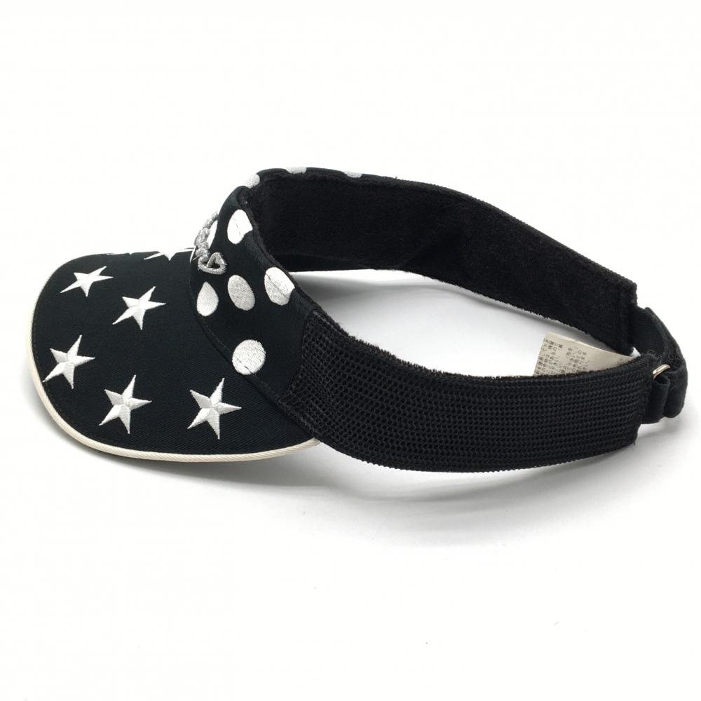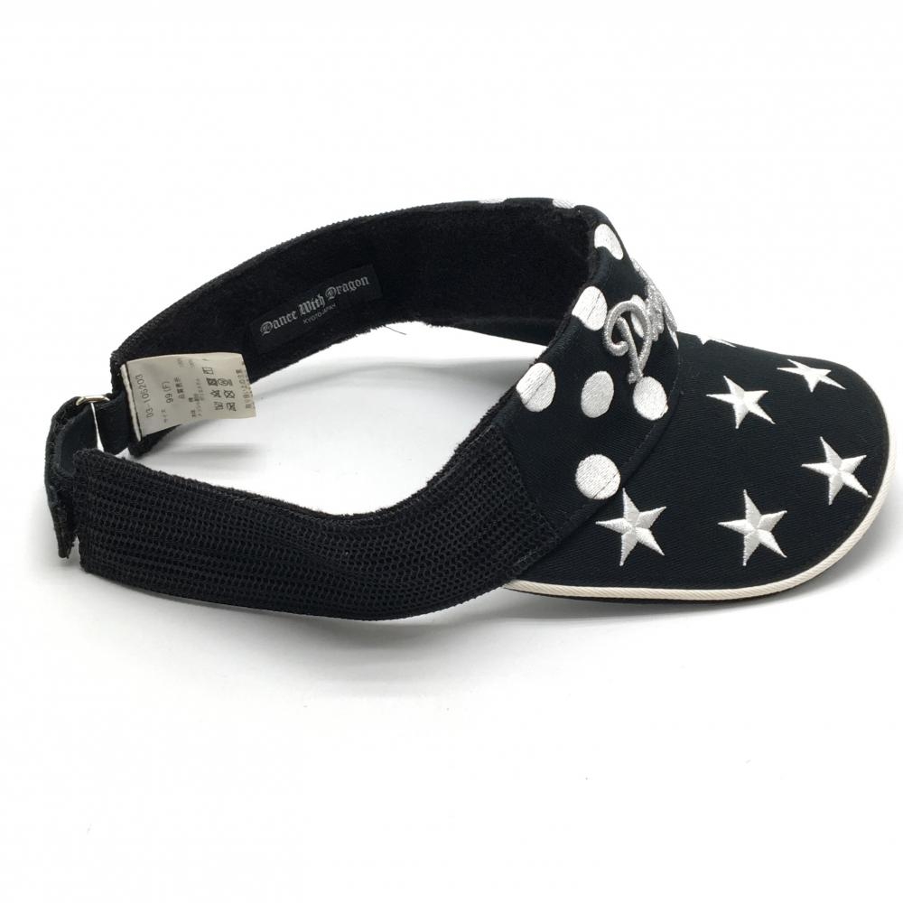 【美品】ダンスウィズドラゴン サンバイザー 黒×白 星刺しゅう ドット 99(F) ゴルフウェア Dance With Dragon