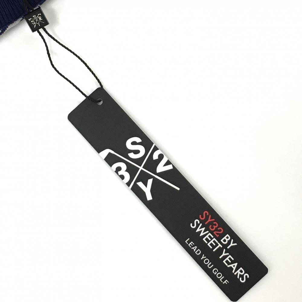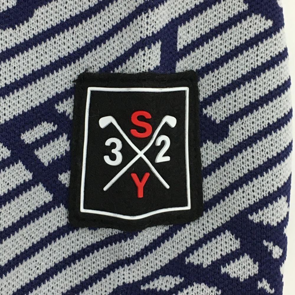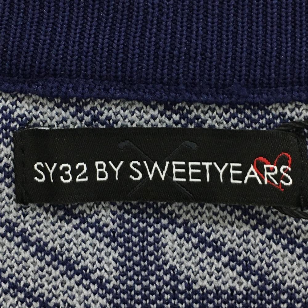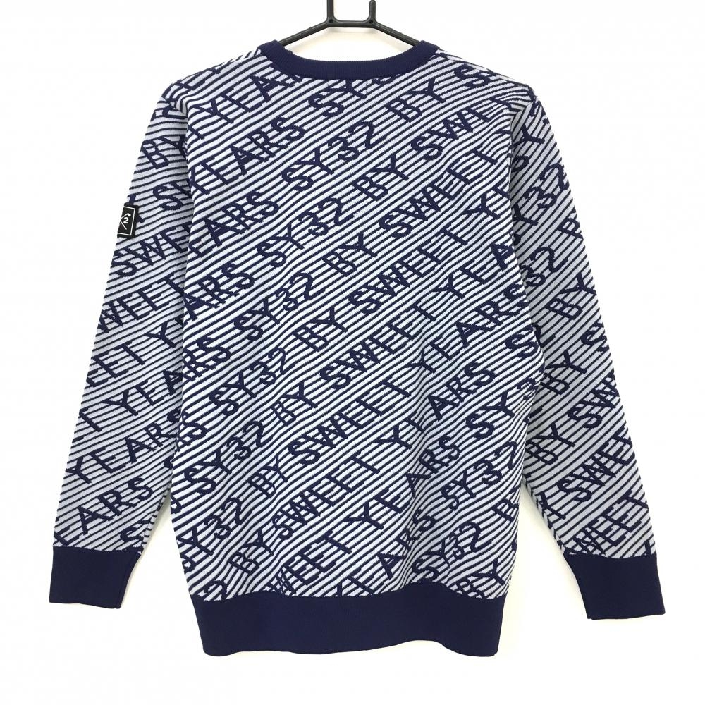 【新品】SY32 セーター ネイビー×ライトグレー ロゴ総柄 斜めボーダー ニット メンズ M ゴルフウェア 2023年モデル SY32 BY SWEET YEARS