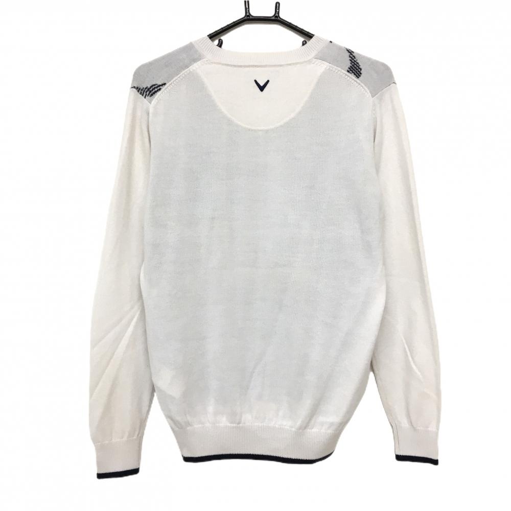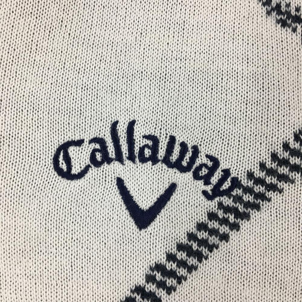 【美品】キャロウェイ セーター 白×ネイビー 前身頃総柄 ウール混 ニット メンズ M ゴルフウェア Callaway